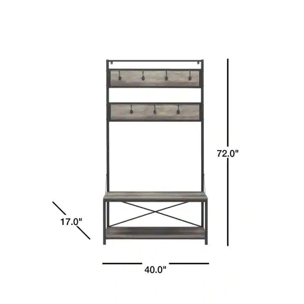 Walker Edison Furniture Company 72 in. Grey Wash Industrial Metal and Wood Hall Tree