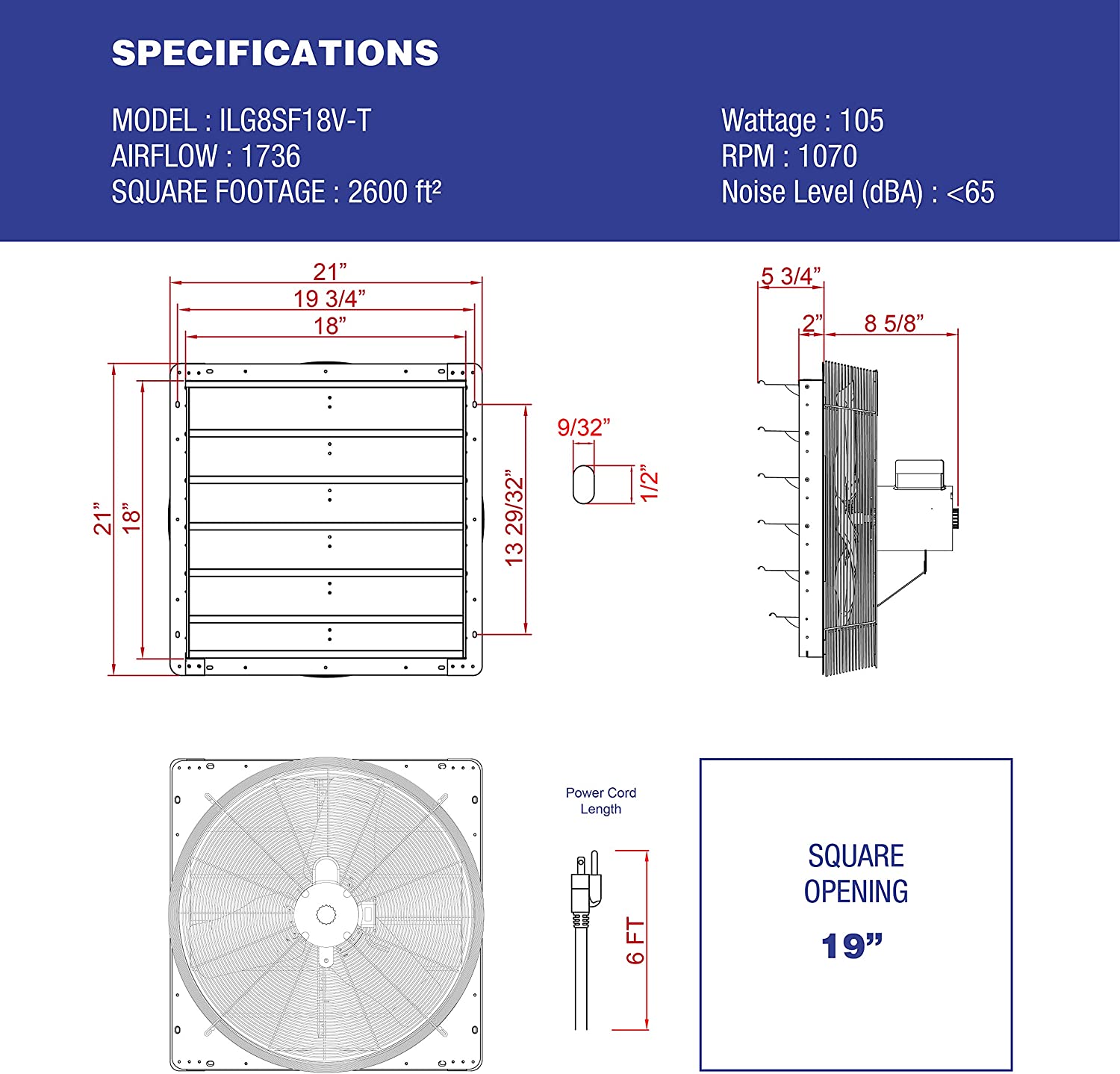 Iliving ILG8SF18V-T Wall-Mount Shutter Exhaust Fan. 18″ - Variable. Silver
