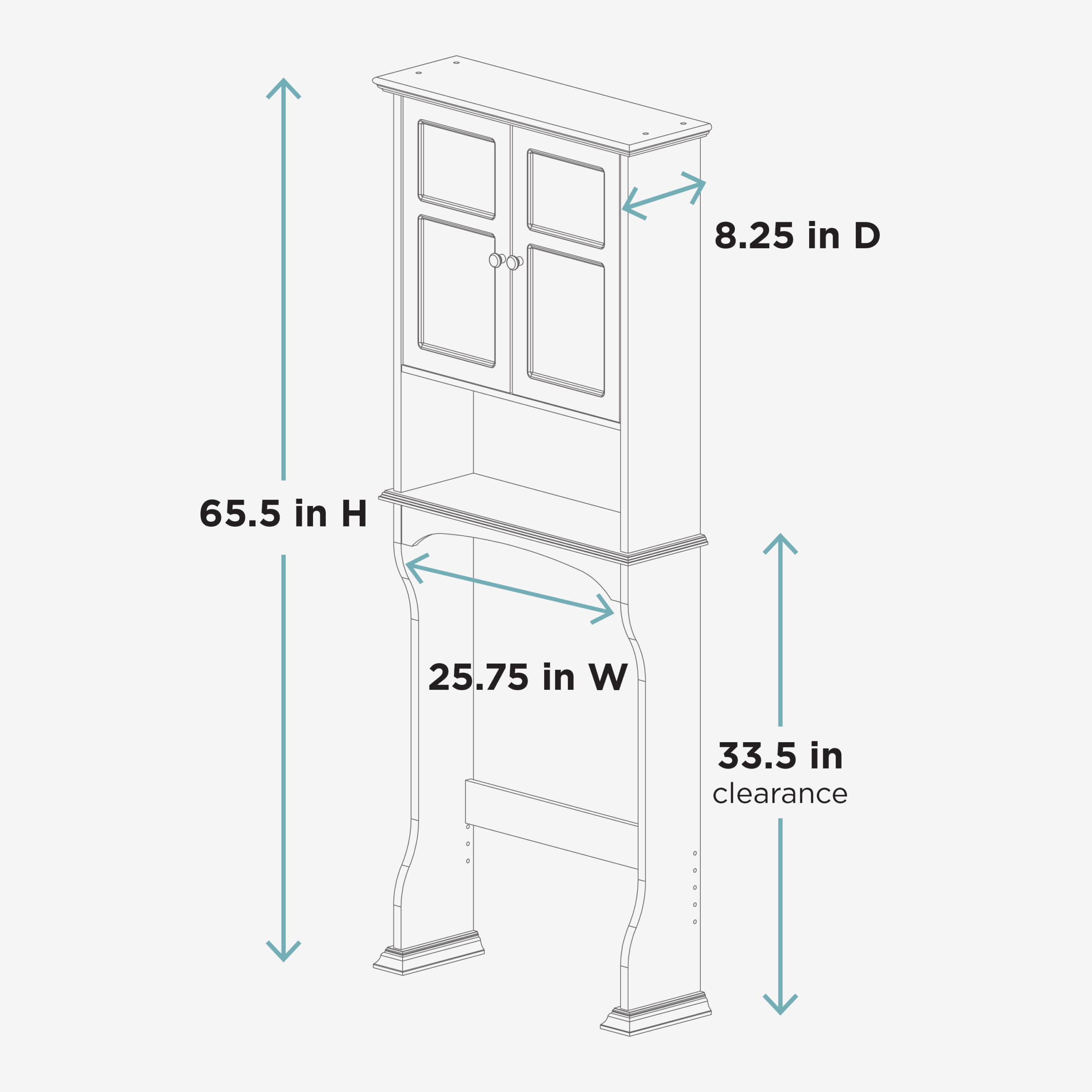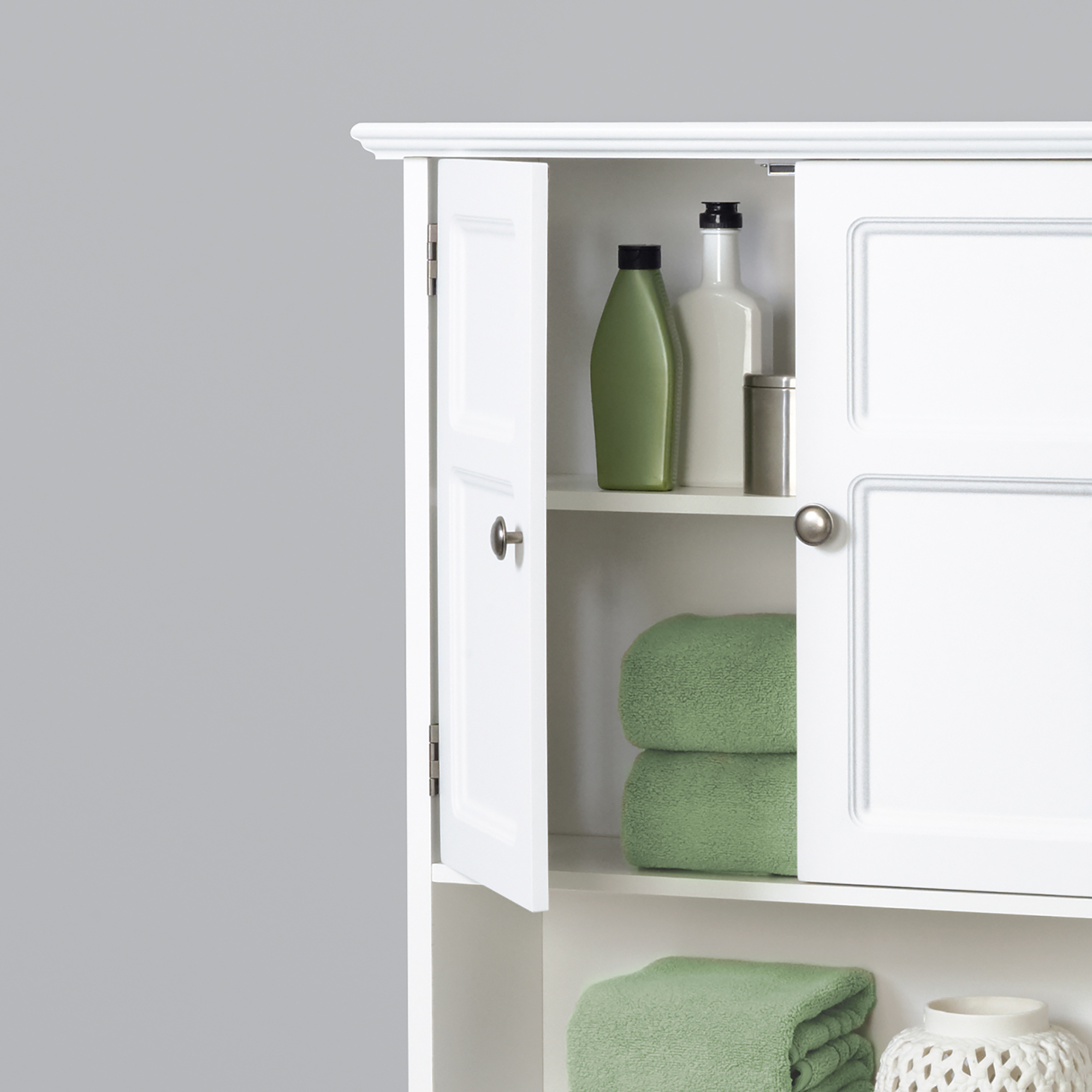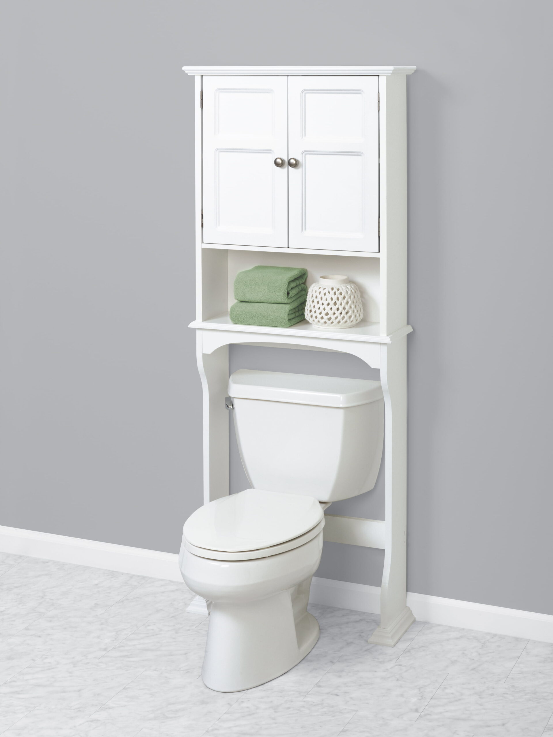 White Bathroom Spacesaver with Cabinet and 3 Shelves. Zenna Home Collette over-the-Toilet