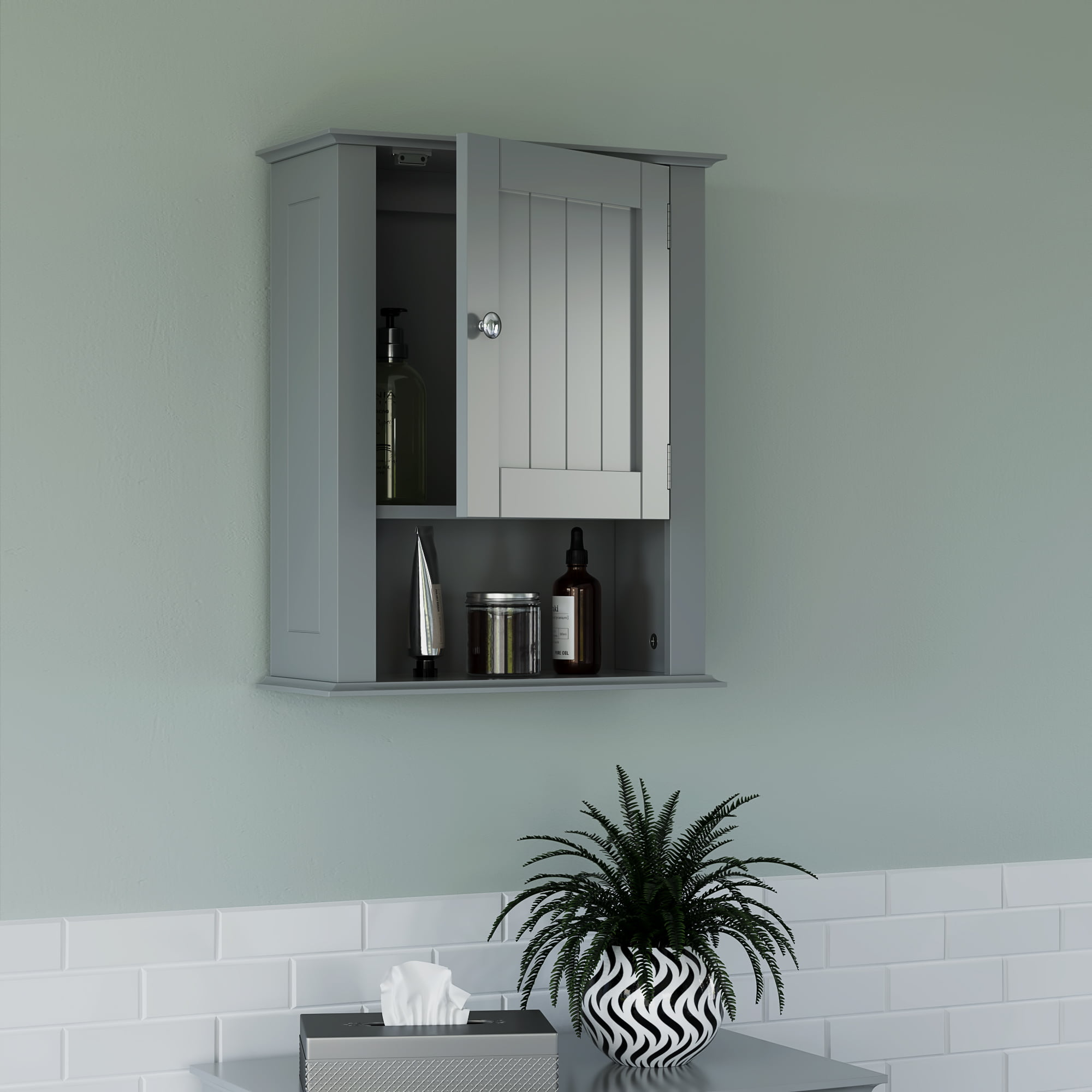 RiverRidge Home Ashland Collection Bath Single Door Wall Cabinet with Open Shelf. Gray
