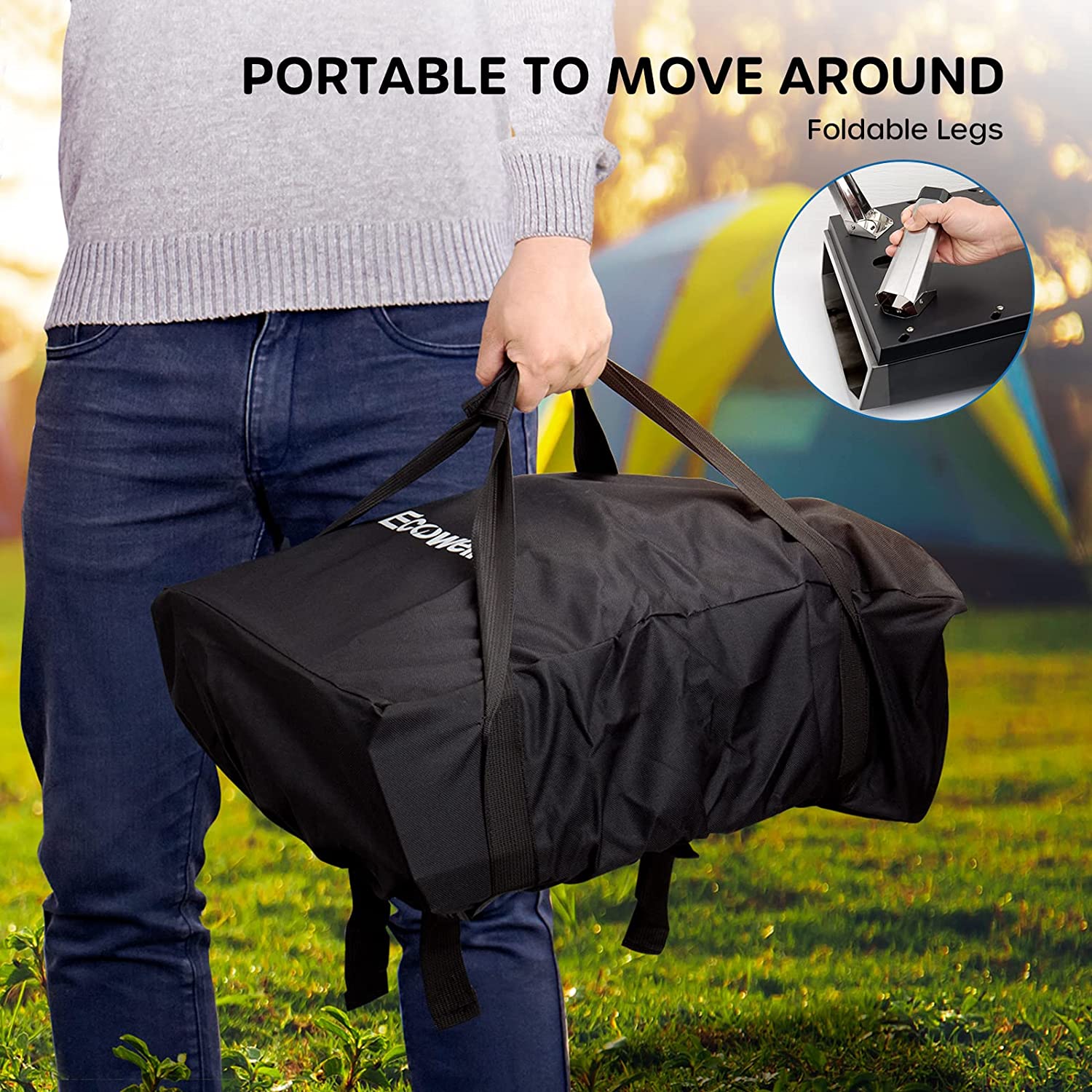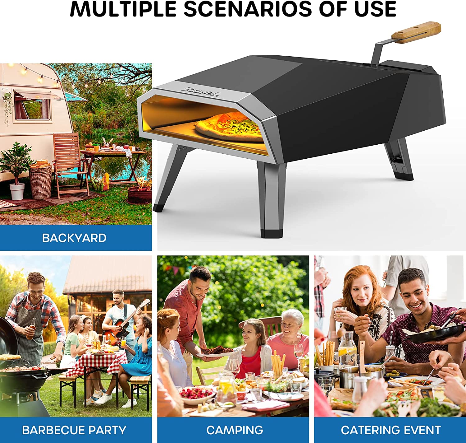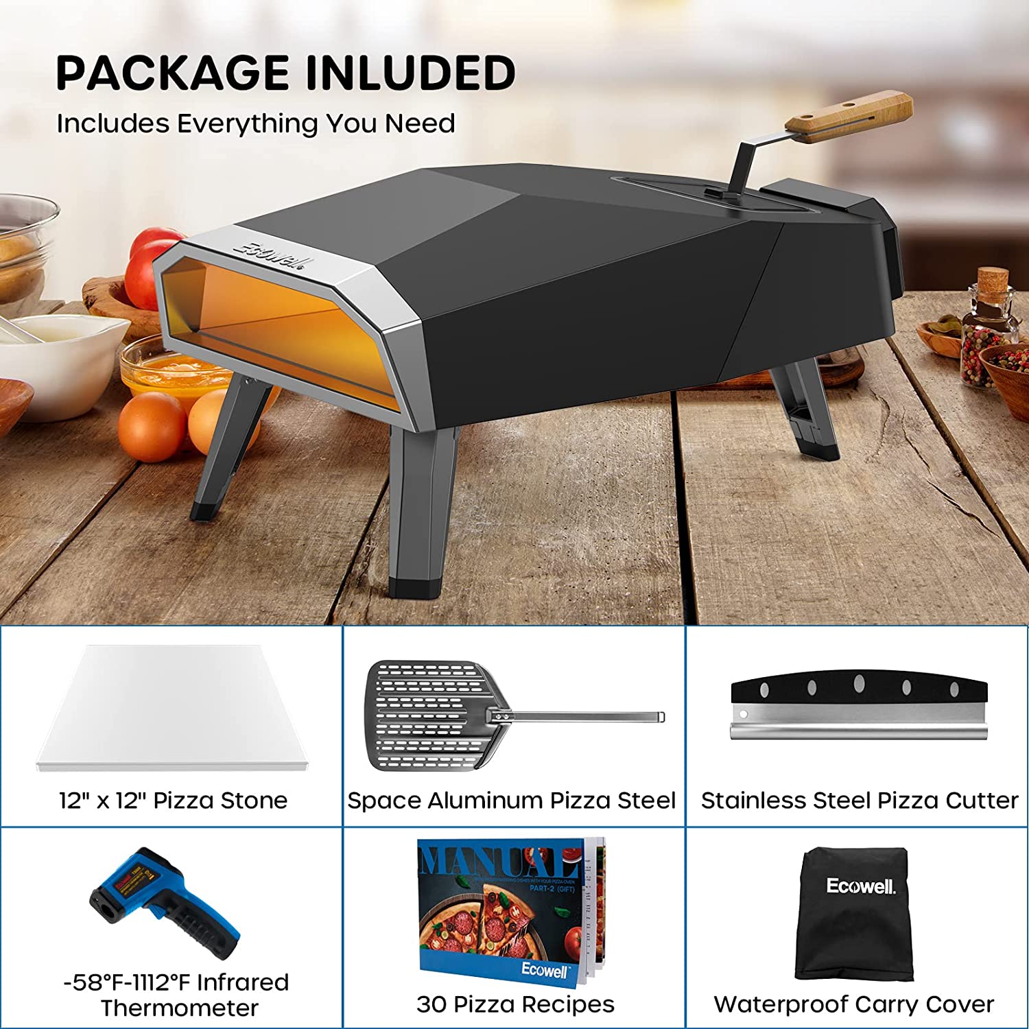 Ecowell EPO12L Outdoor Wood Fired-12 Outside. Pellet Oven with Pizza Stone/Peel/Cutter. Infrared Thermometer and Portable Cover. Black