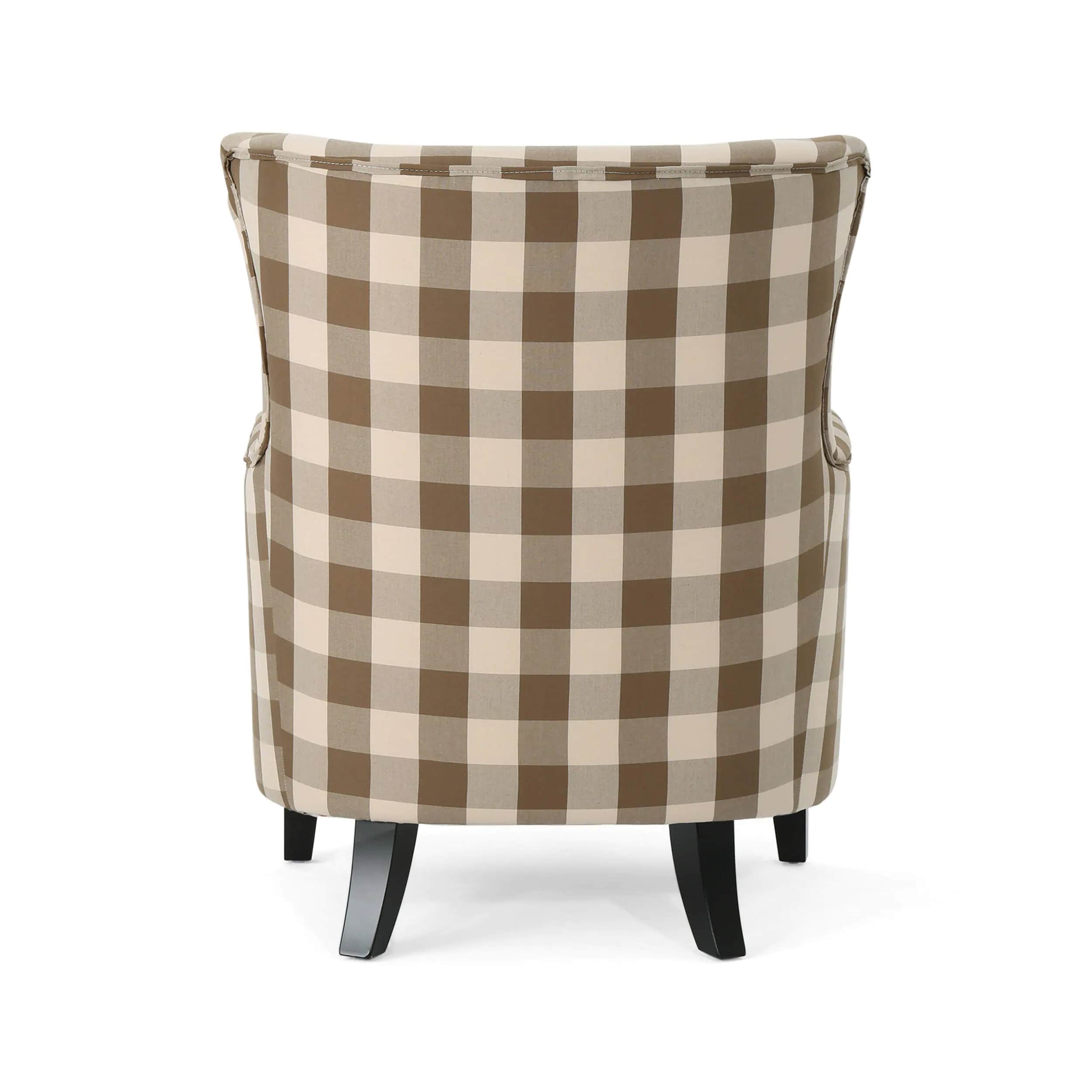Noble House Arabella Brown Checkerboard Fabric Club Chair