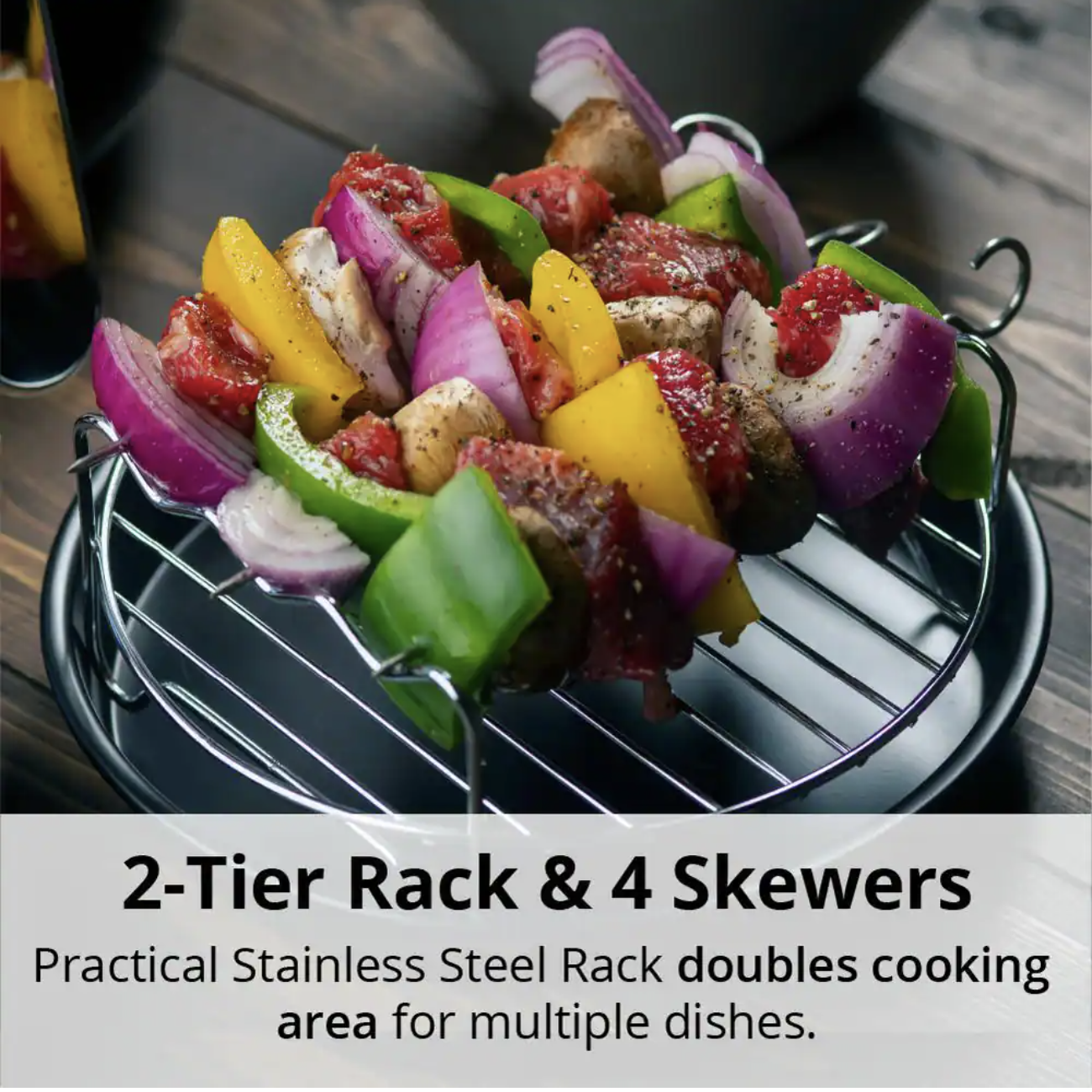 Aria 5Qt Teflon-Free Premium Ceramic Air Fryer with 2-Tier Stainless Steel Rack. Baking Pan. Skewers. Recipe Book