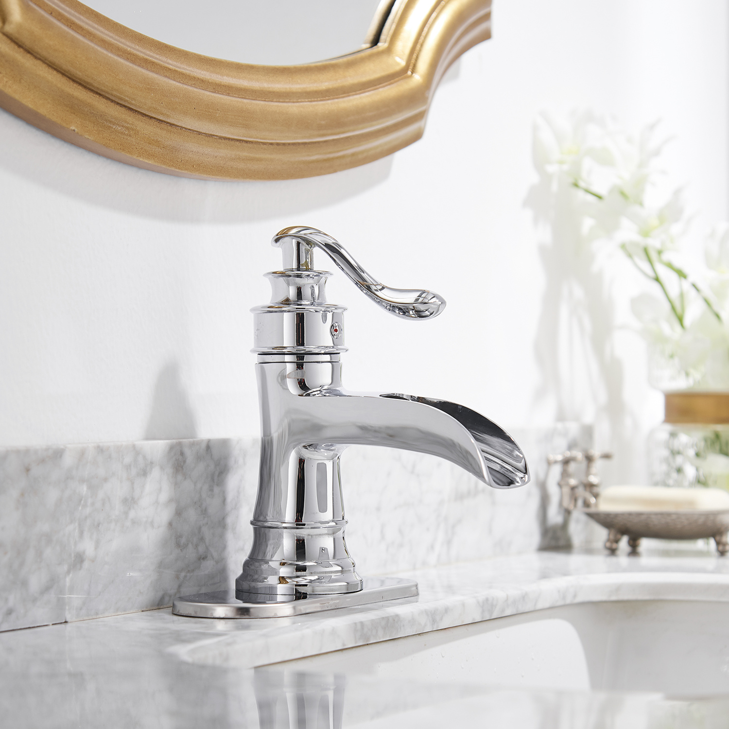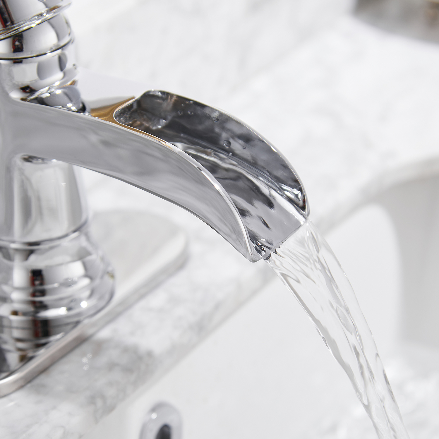 BWE Waterfall Single Hole Single-Handle Low-Arc Bathroom Faucet With Pop-up Drain Assembly in Polished Chrome