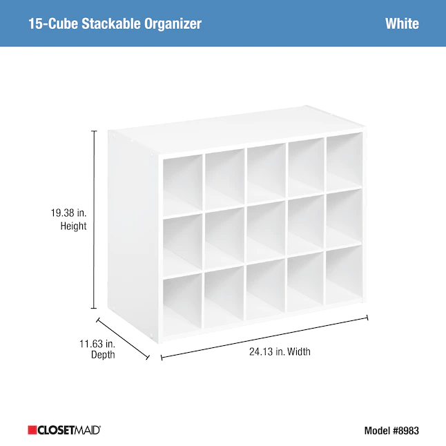 ClosetMaid 19.38-in H x 24.13-in W x 11.63-in D White Stackable Wood Laminate 15 Cube Organizer