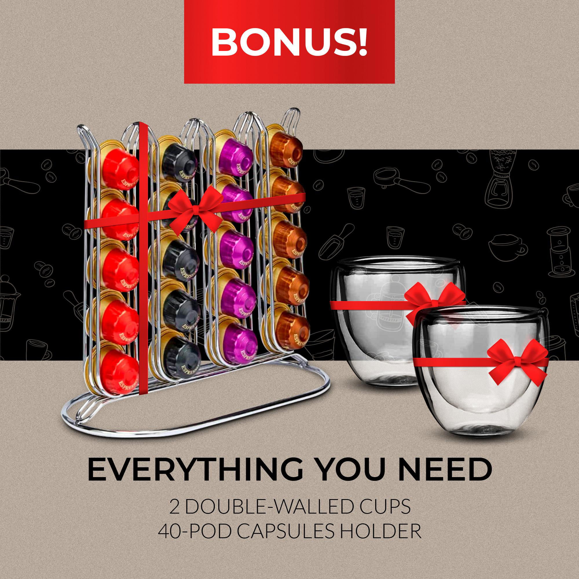 ChefWave Espresso Machine for Nespresso Capsules (Black) with Holder and Cups