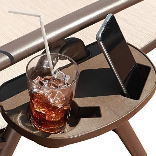 GOLDSUN Aluminum Outdoor Folding Reclining Adjustable Chaise Lounge Chair with Headrest and Tray for Backyard Beach Porch Patio Swimming Poolside (Single. Beige)