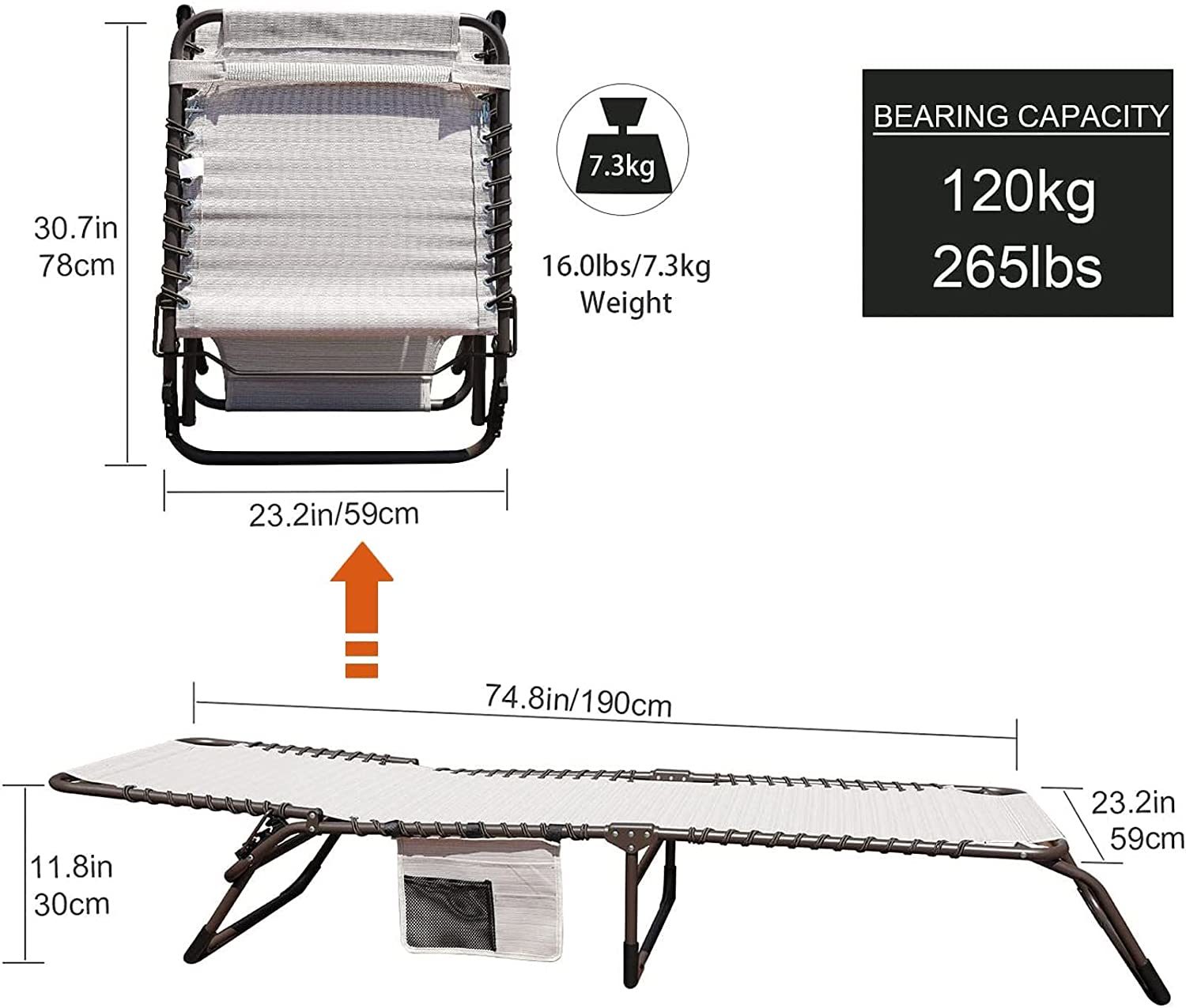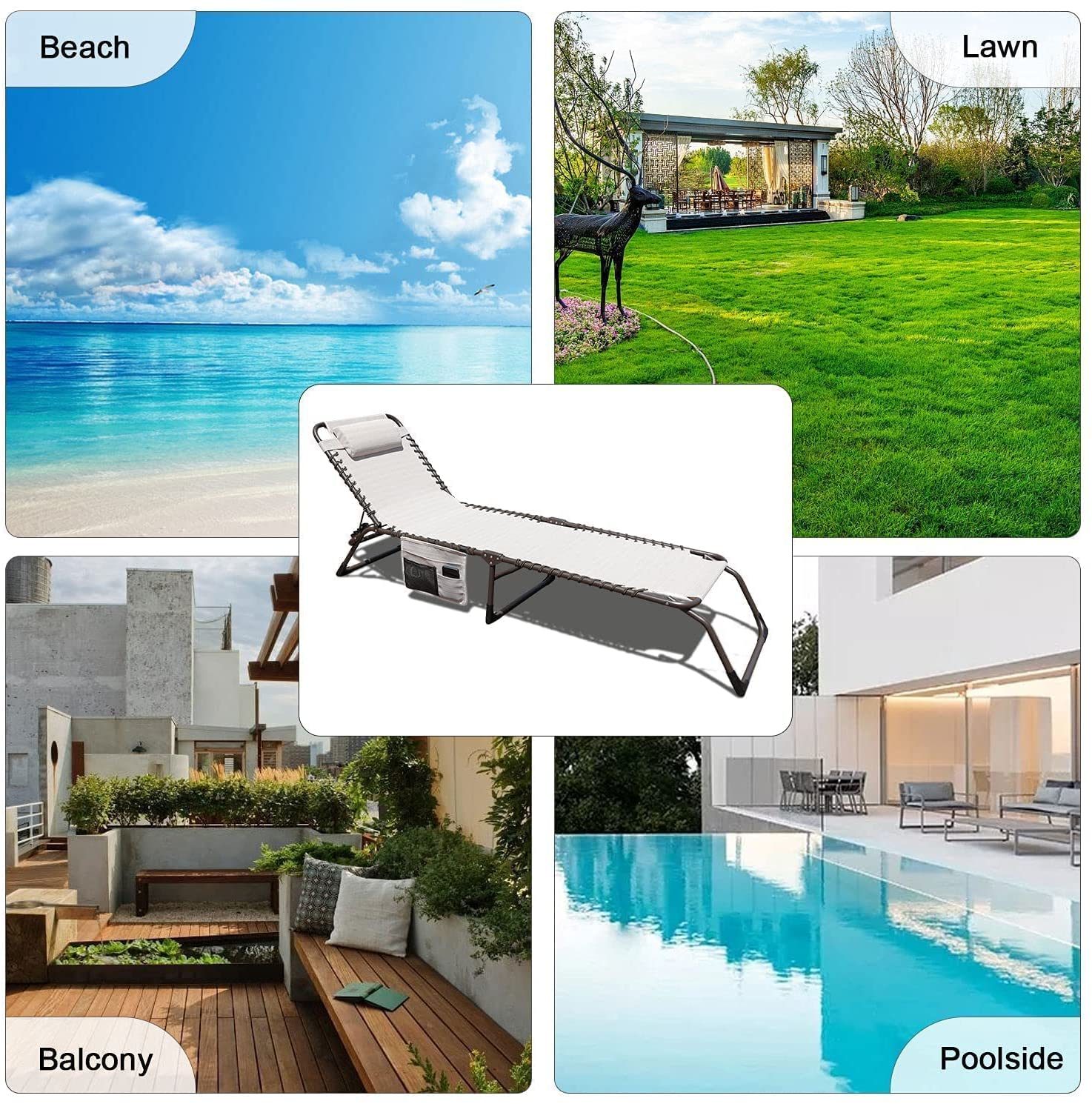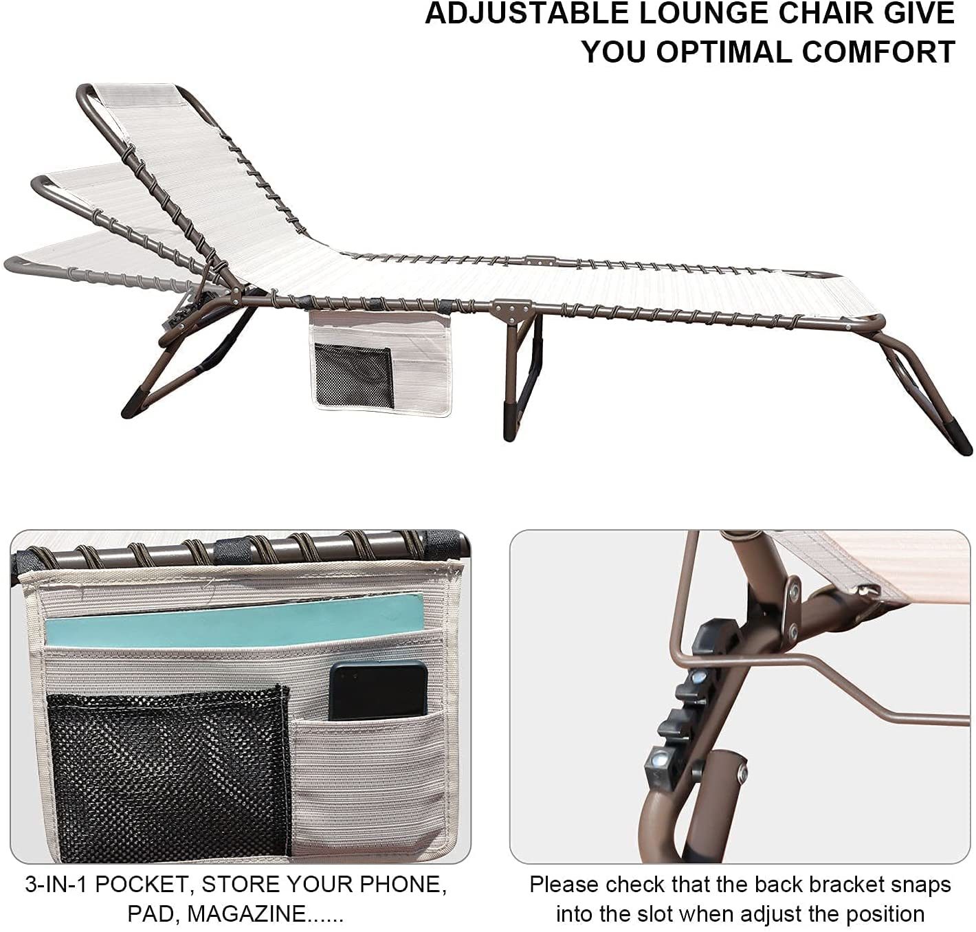 GOLDSUN 2 Pieces Outdoor Chaise Lounge Set with Detachable Pocket and Pillow. Portable Adjustable Patio Sun Lounge Chair Set for Garden.Beach. Sunbathing. Pool. Deck.Camping and Poolside-Beige
