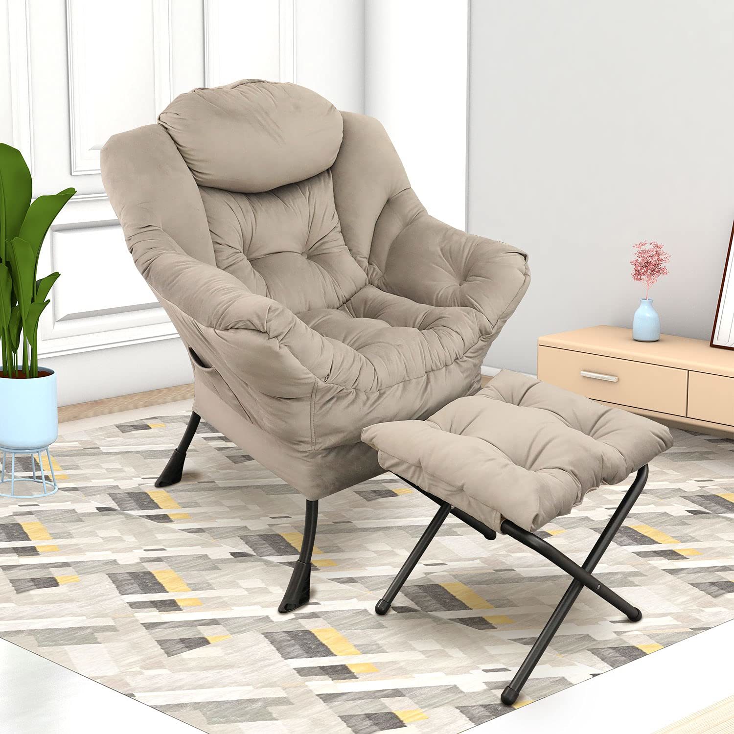 GOLDSUN Accent Chair Lazy Reclining Armchair with Removable Metal Legs and High-Density Foam. Comfy Upholstered Single Sofa Chair for Living Room. Bedroom. Office (Grey with Ottoman)