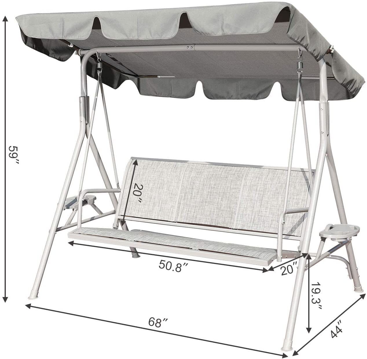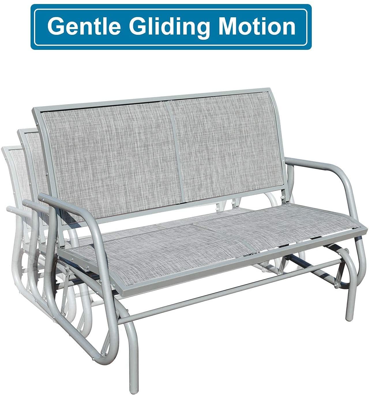 GOLDSUN 2 Person Swing Glider Chair Patio Swing Bench with Cup Holder Garden Rocking Seat for Outdoor Patio.Backyard.Deck Swimming Pool(Gray)