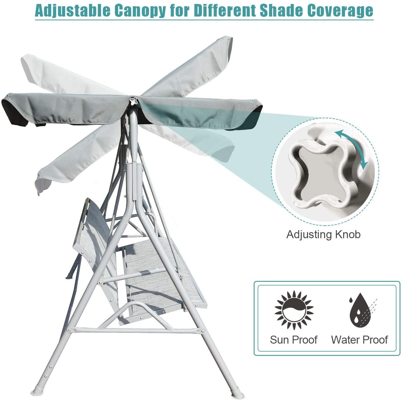 GOLDSUN Outdoor Canopy Swing Seat with Stand.Swinging Hammock Lounge Chair with Weather Resistant Powder Coated Steel Frame and Adjustable Canopy for Garden Patio Porch Poolside Backyard(Grey)