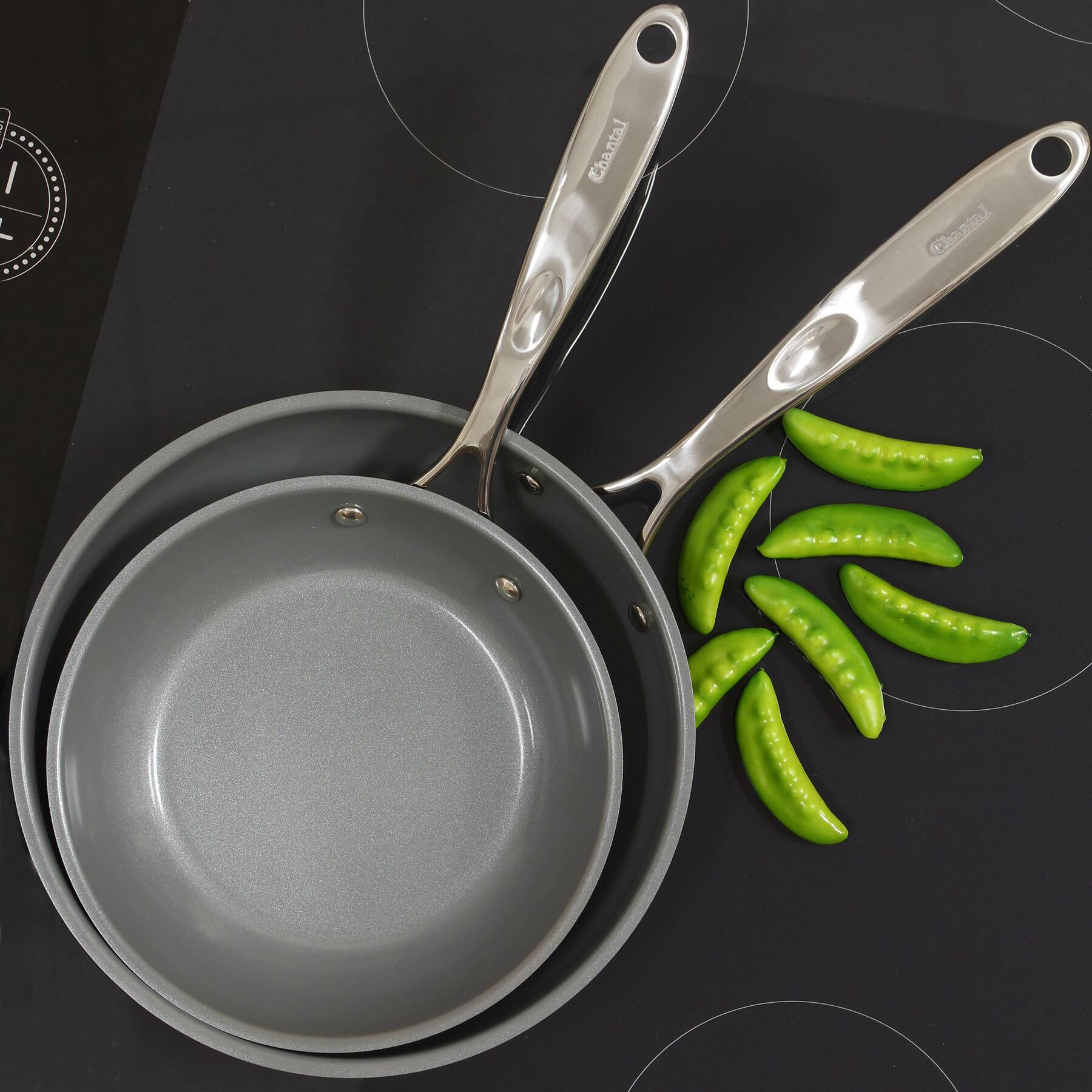 Chantal Induction 21 Steel 10 in. Stainless Steel Ceramic Nonstick Frying Pan In Brushed Stainless Steel