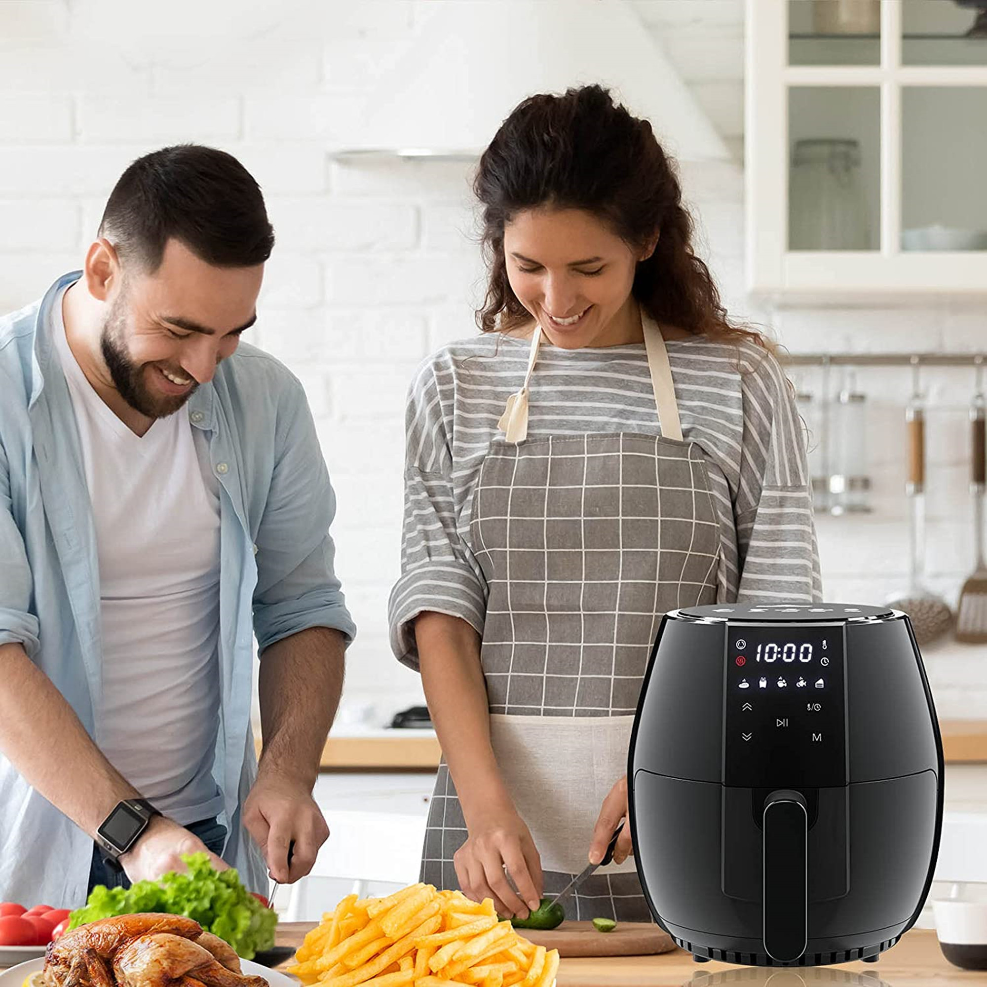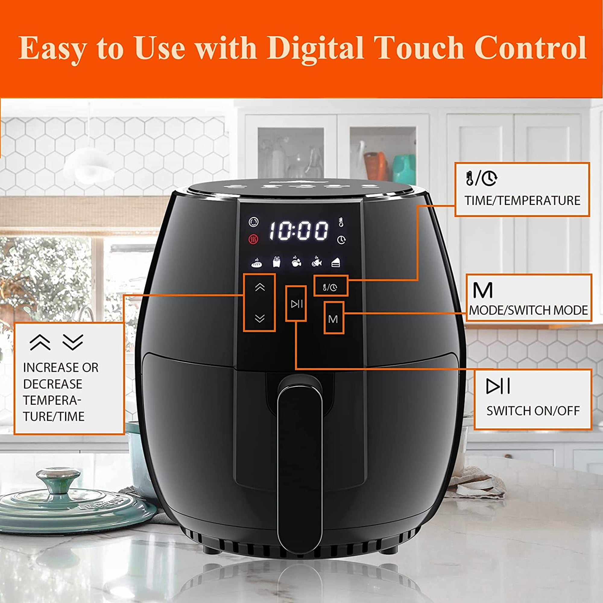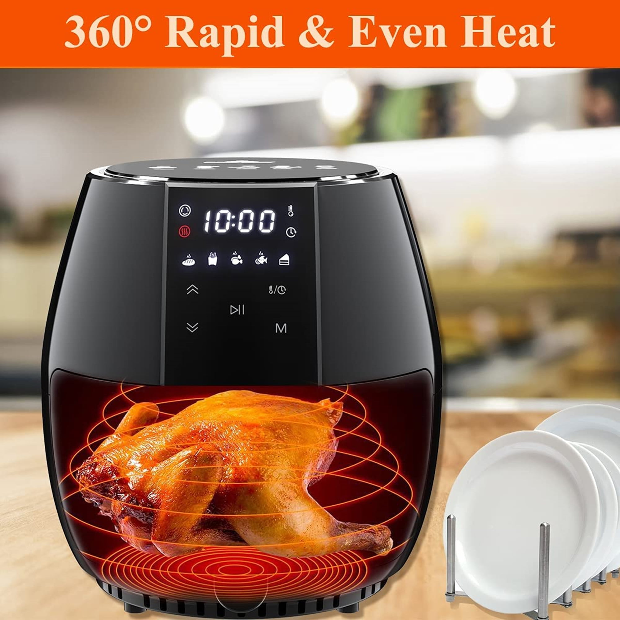 Sanptent 5.8 Quart Air Fryer. Electric Hot Oven Oilless Multifunctional Cooker with Digital LED Touchscreen. Auto Shut-off. ETL Certified. Best Present Gift (Black)