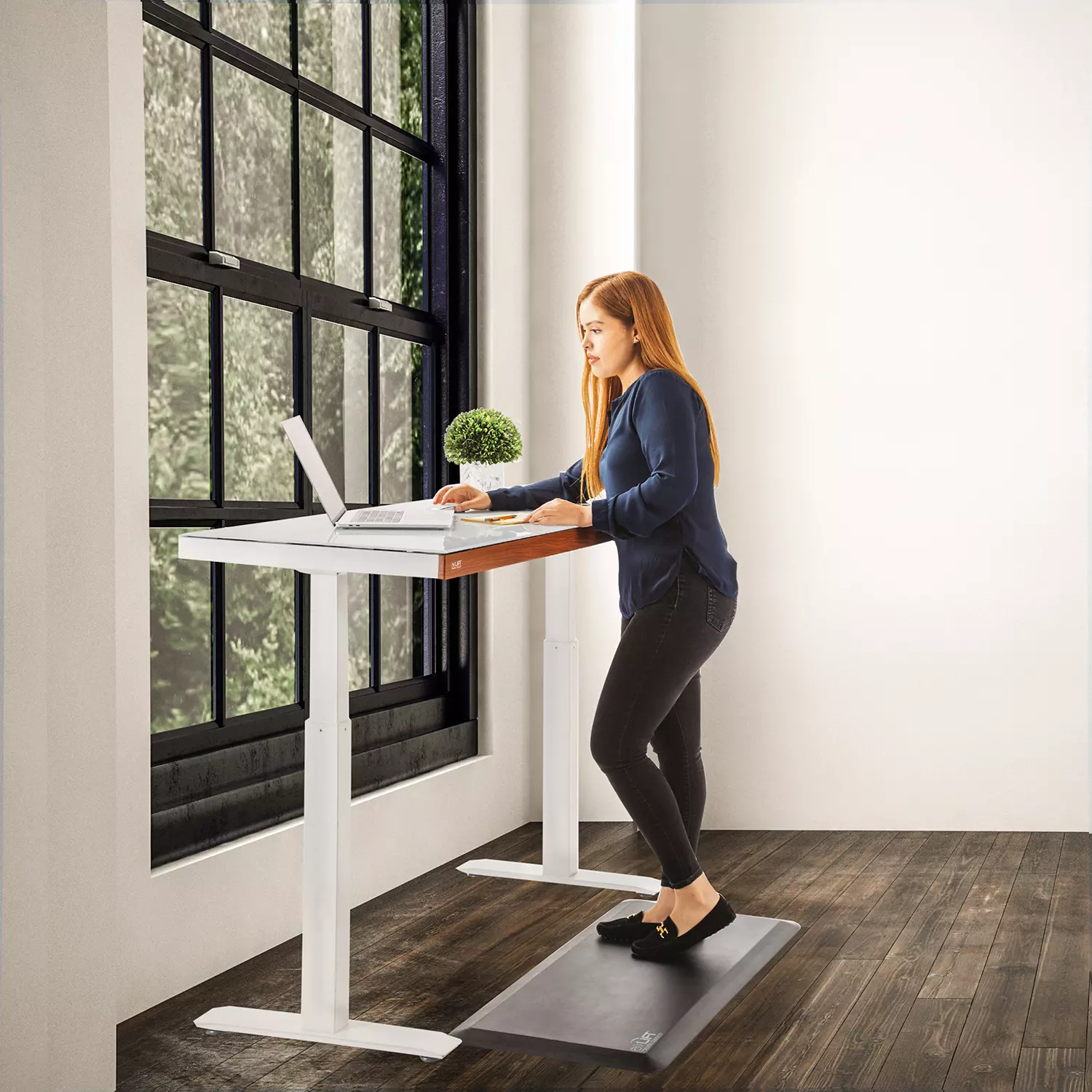Seville Classics airLIFT 48″ Tempered Glass Electric Sit-Stand Desk