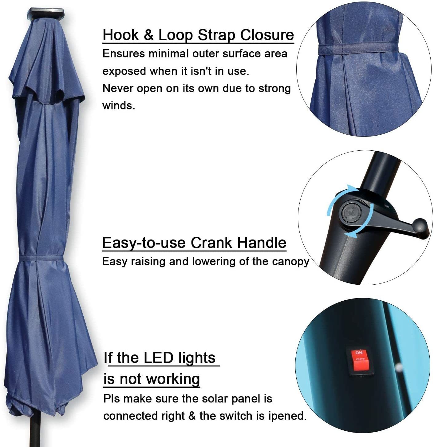Goldsun Patio 9 Ft Market Outdoor Aluminum Table Umbrella with Solar LED Led lights and Push Button Tilt (Navy Blue)