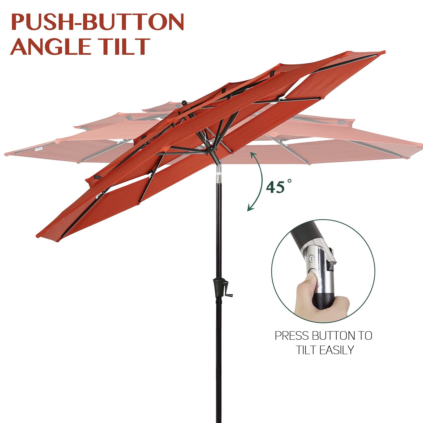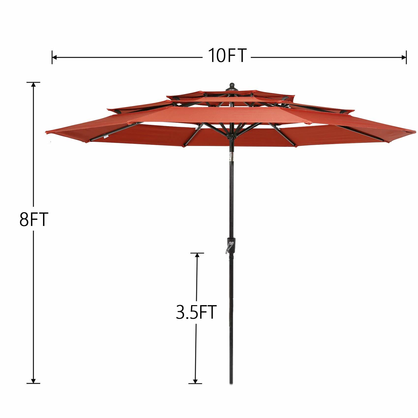 10ft Patio Umbrella Outdoor 3 Tier Vented Market Table Umbrella with 1.5″ Aluminum Pole and 8 Sturdy Ribs. (Orange Red)