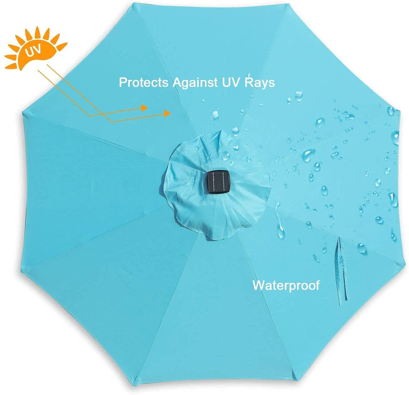 GOLDSUN Patio 9 Ft Market Outdoor Aluminum Table Umbrella with Solar LED Led lights and Push Button Tilt (Aqua blue)