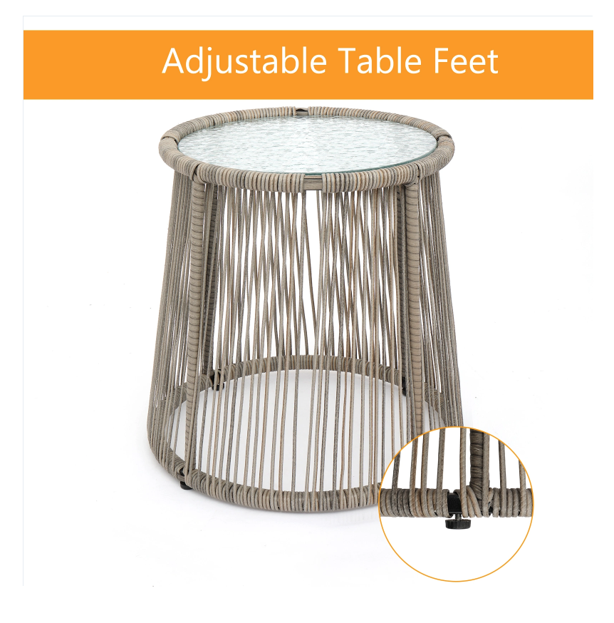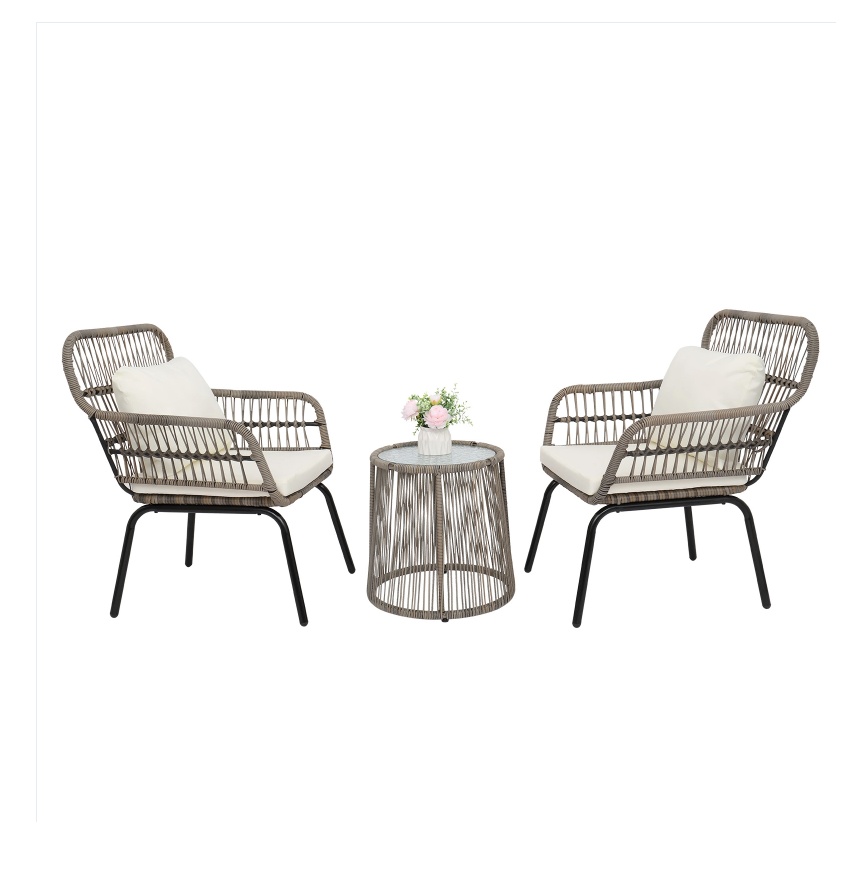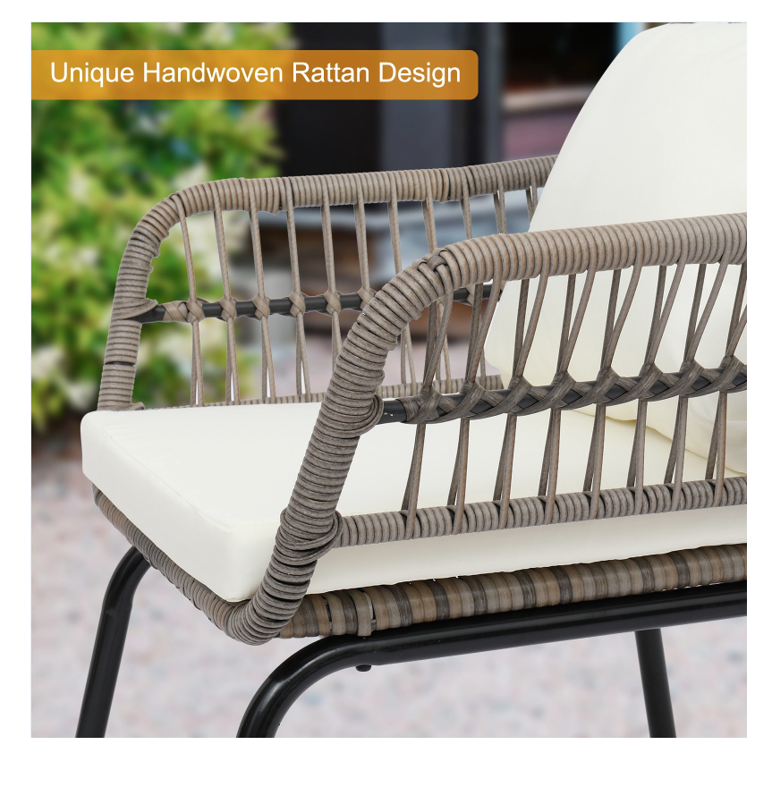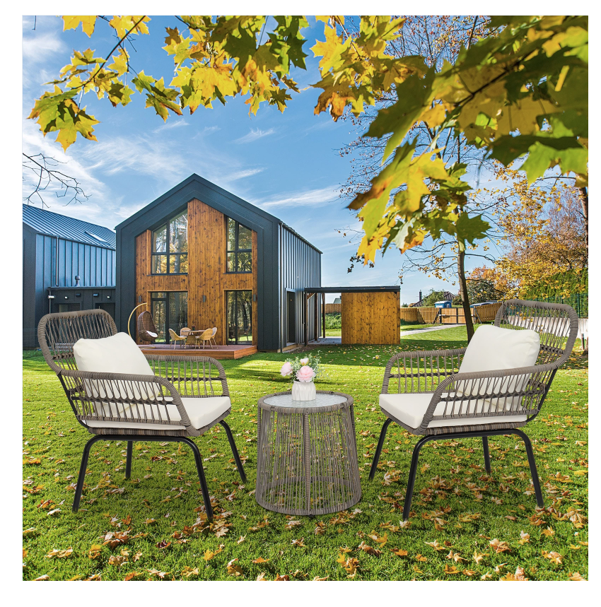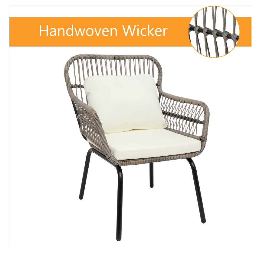 DISCOUNTTODAY 3-Piece Patio Wicker Conversation Bistro Set with 2 Chairs & Glass Top Side Table & Cushions Tan