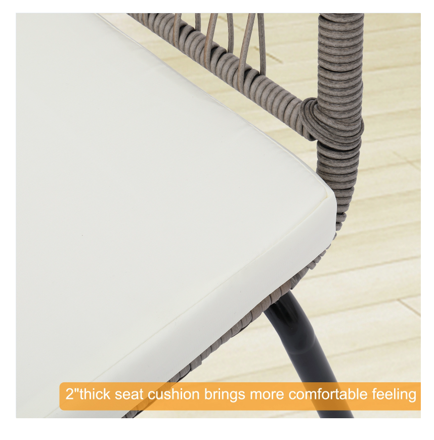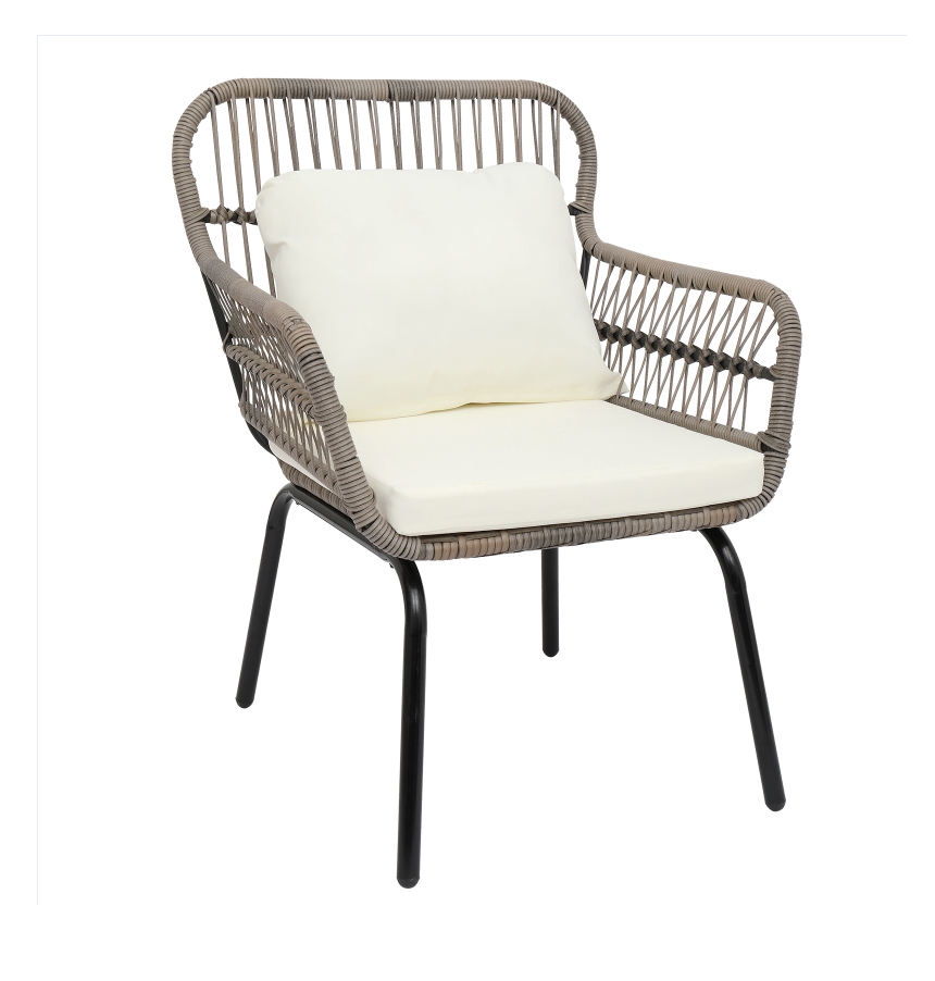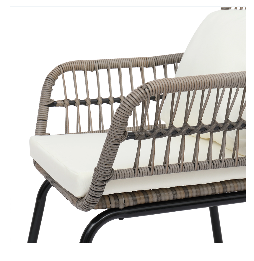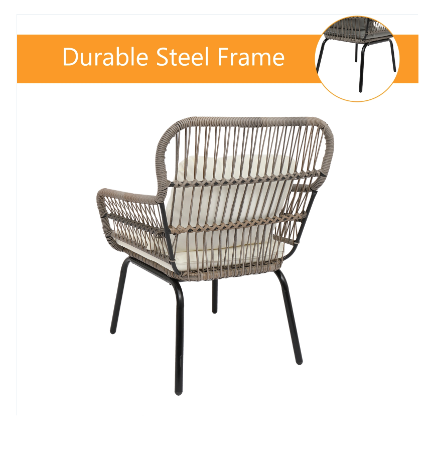 DISCOUNTTODAY 3-Piece Patio Wicker Conversation Bistro Set with 2 Chairs & Glass Top Side Table & Cushions Tan