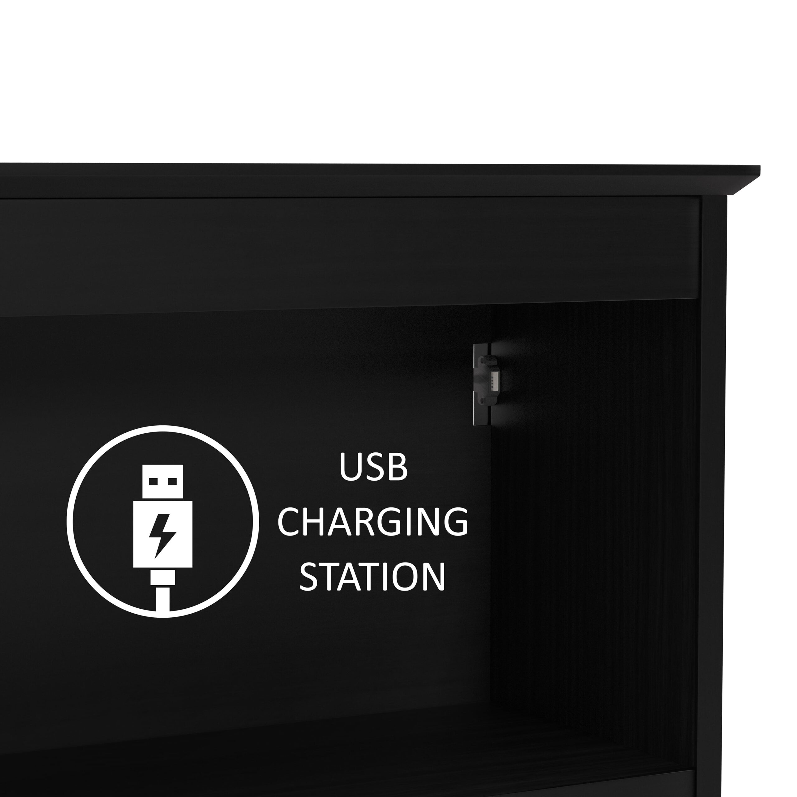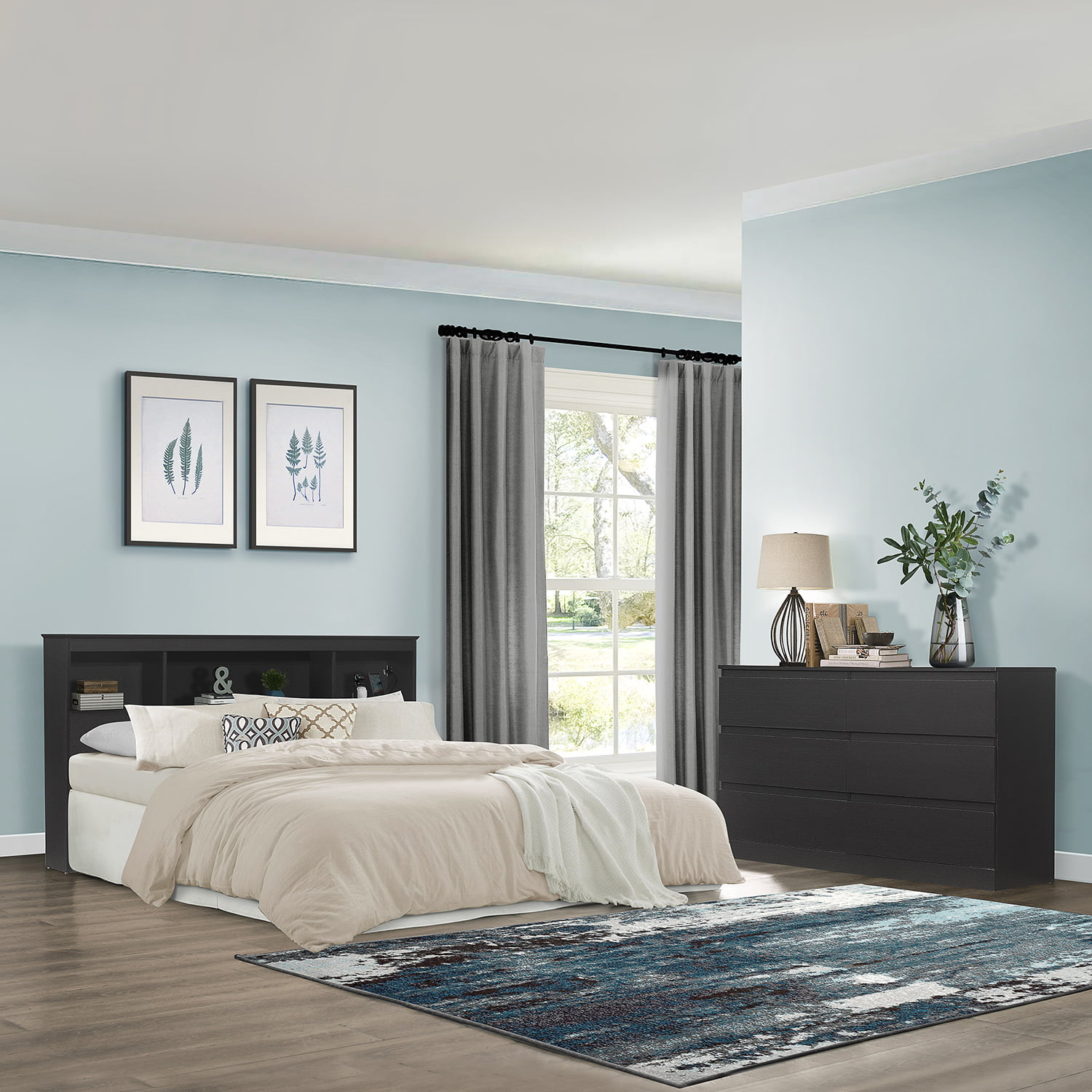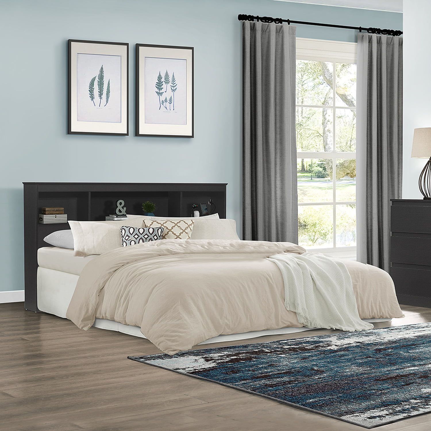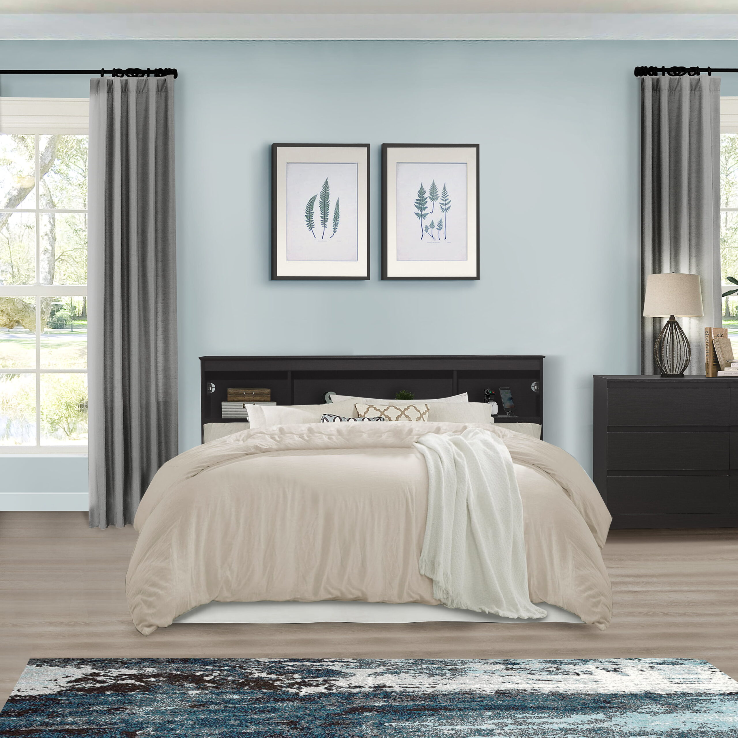 Woven Paths Carriage Hill Low Profile Bookcase Full/ Queen Headboard with 2 USB Ports. Black Oak