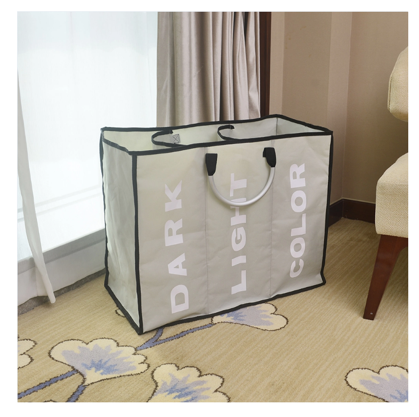 DISCOUNTTODAY Laundry Basket 3 Sections with Handles Large Dirty Clothes Hamper Foldable Bag Bin Organizer Large Capacity Foldable Waterproof Laundry Basket for Dirty Clothes Storage (GR567)