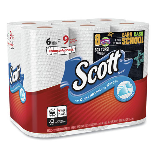 Scott 16447 Choose-a-Size Mega Rolls - White (102 Sheets/Roll. 6 Rolls/Pack. 4 Packs/Carton)