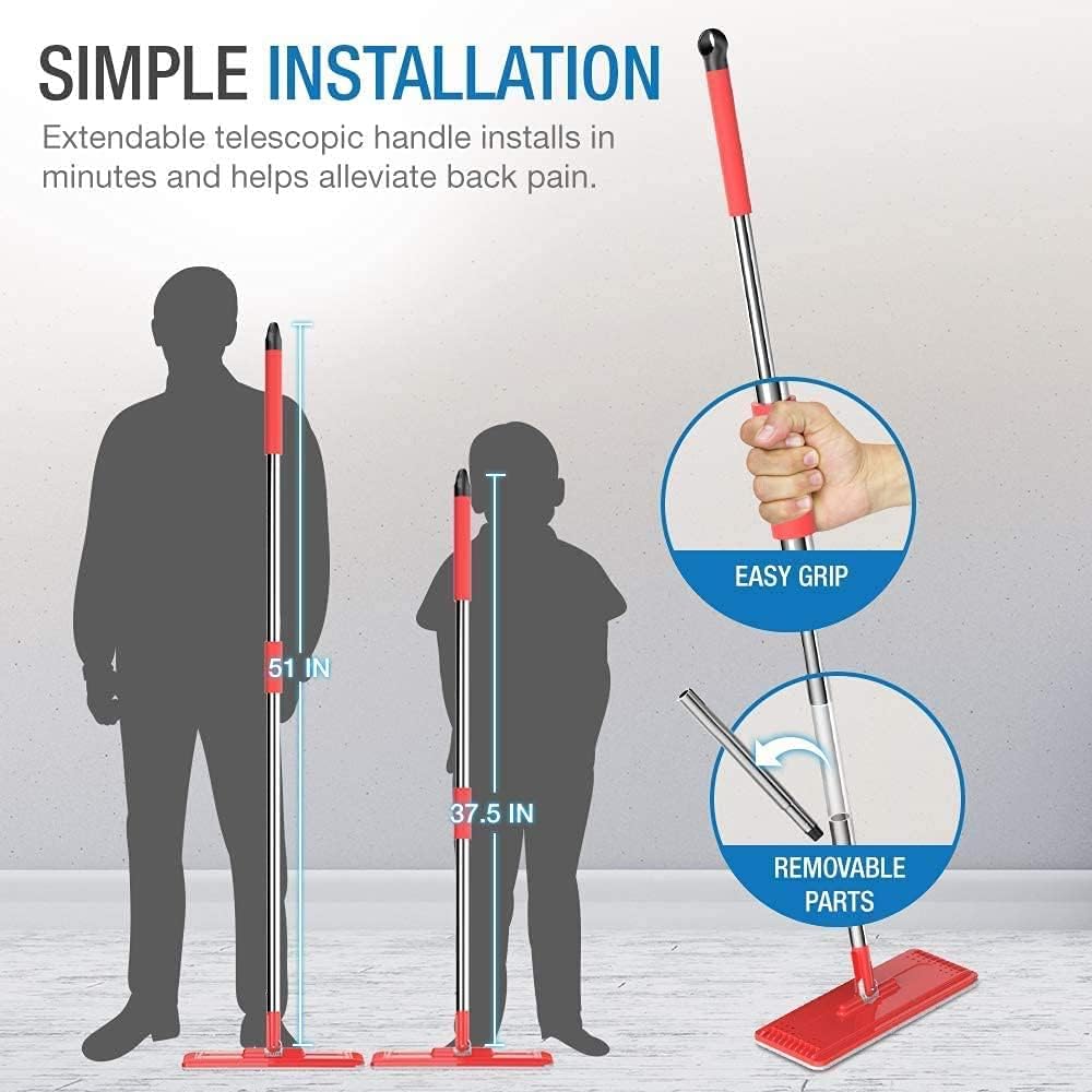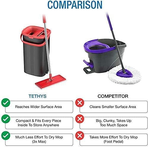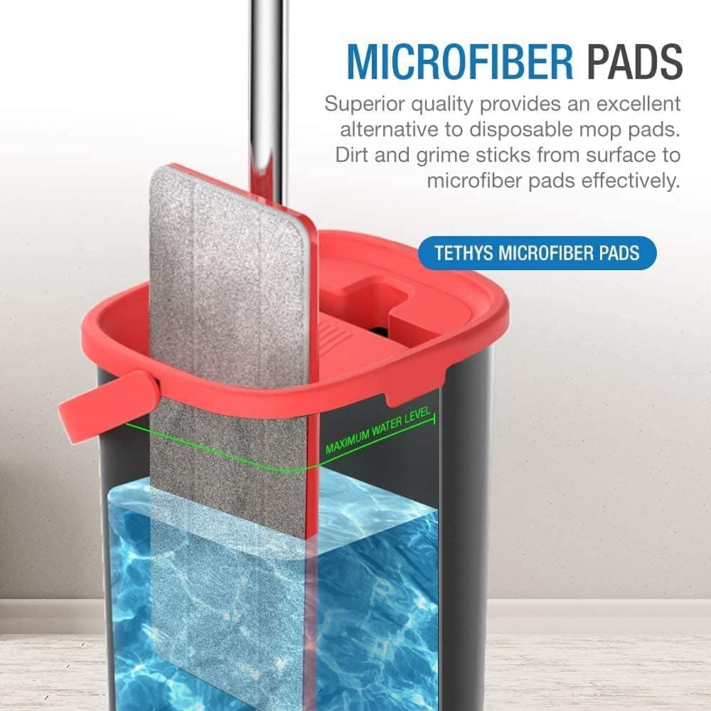 TETHYS Flat Floor Mop and Bucket Set for Professional Home Floor Cleaning System with Aluminum Handle/2-Washable Microfiber Pads Perfect Home + Kitchen Cleaner for Hardwood. Laminate. Tiles. Vinyl