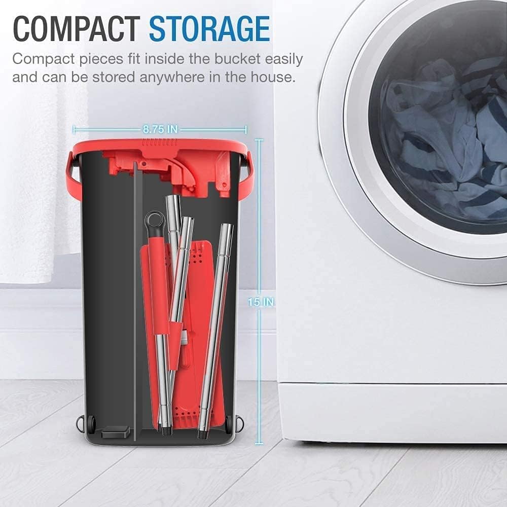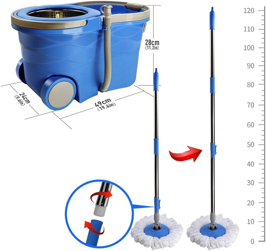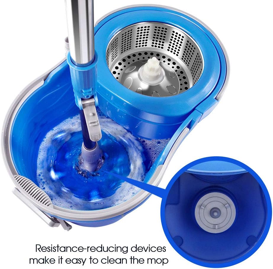 Masthome Mop and Bucket with Wringer Set. Spin Mop and Bucket On Wheels with 5 Microfiber Mop Heads and 1 Floor Brush Head. Self Wringing Mop for Floor Cleaning. 12L