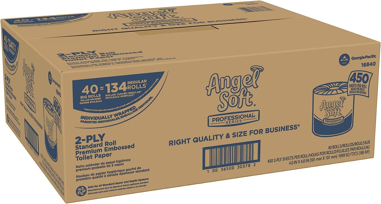 Georgia-Pacific Angel Soft Professional Series Premium 2-Ply Embossed Toilet Paper. 16840. 450 Sheets Per Roll. 40 Rolls Per Case. White