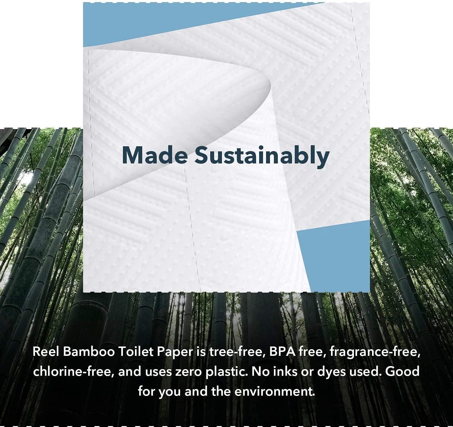 Bulk Reel Premium Bamboo Toilet Paper - 2 Pack - 48 Rolls of Toilet Paper - 3-Ply Made From Tree-Free. 100% Bamboo Fibers - Eco-Friendly Zero Plastic Packaging