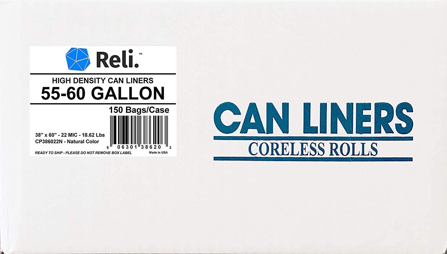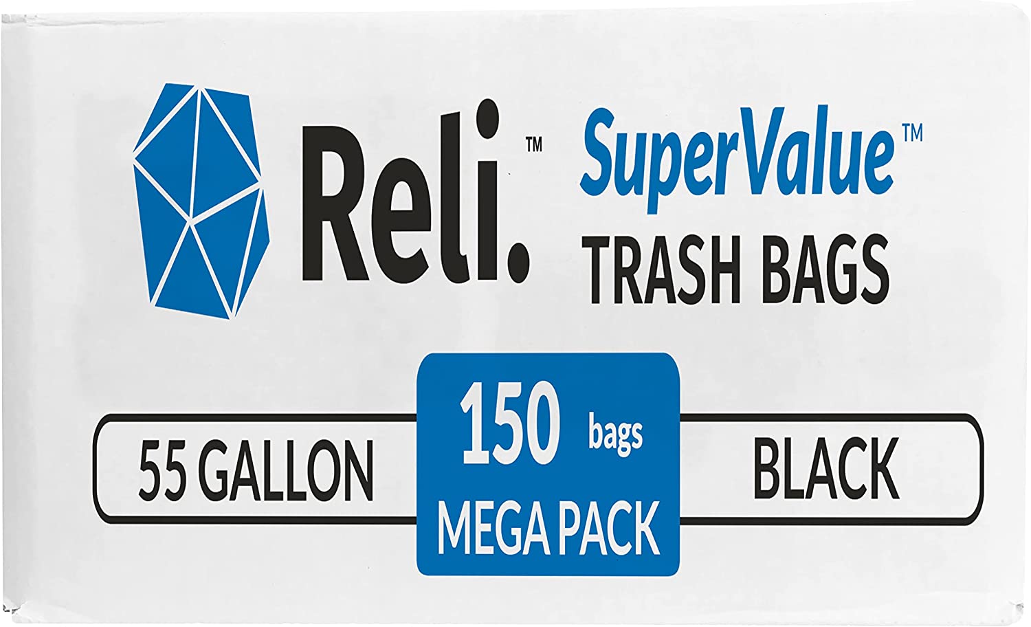 Reli. SuperValue 55 Gallon Trash Bags (150 Count Bulk). Made in USA - Clear Trash Bags Heavy Duty 55 Gallon - 60 Gallon - 55 Gal Garbage Bag