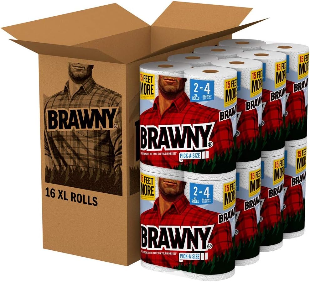Brawny Paper Towels. 16 XL Rolls. Pick-A-Size. White. 16 = 32 Regular Rolls