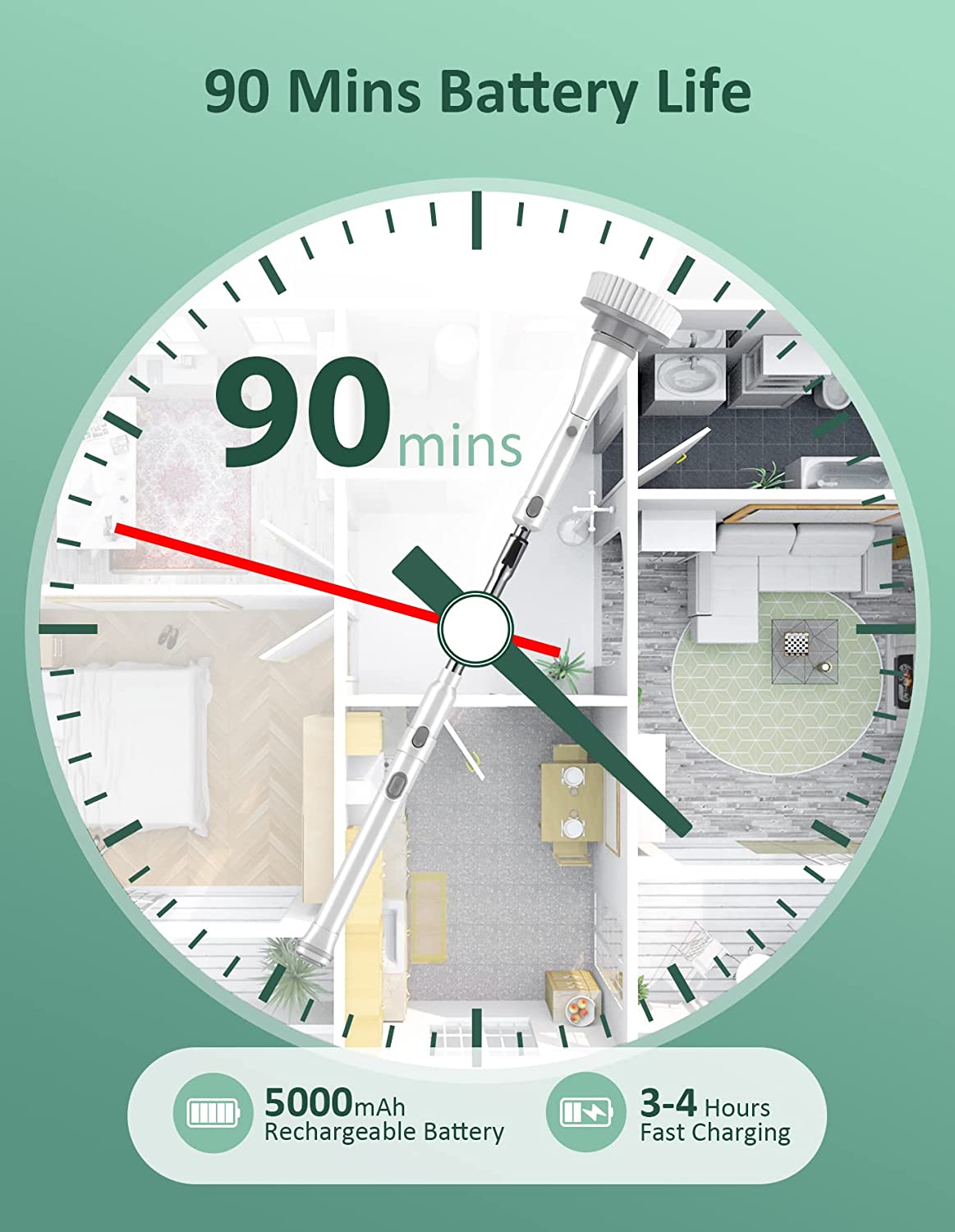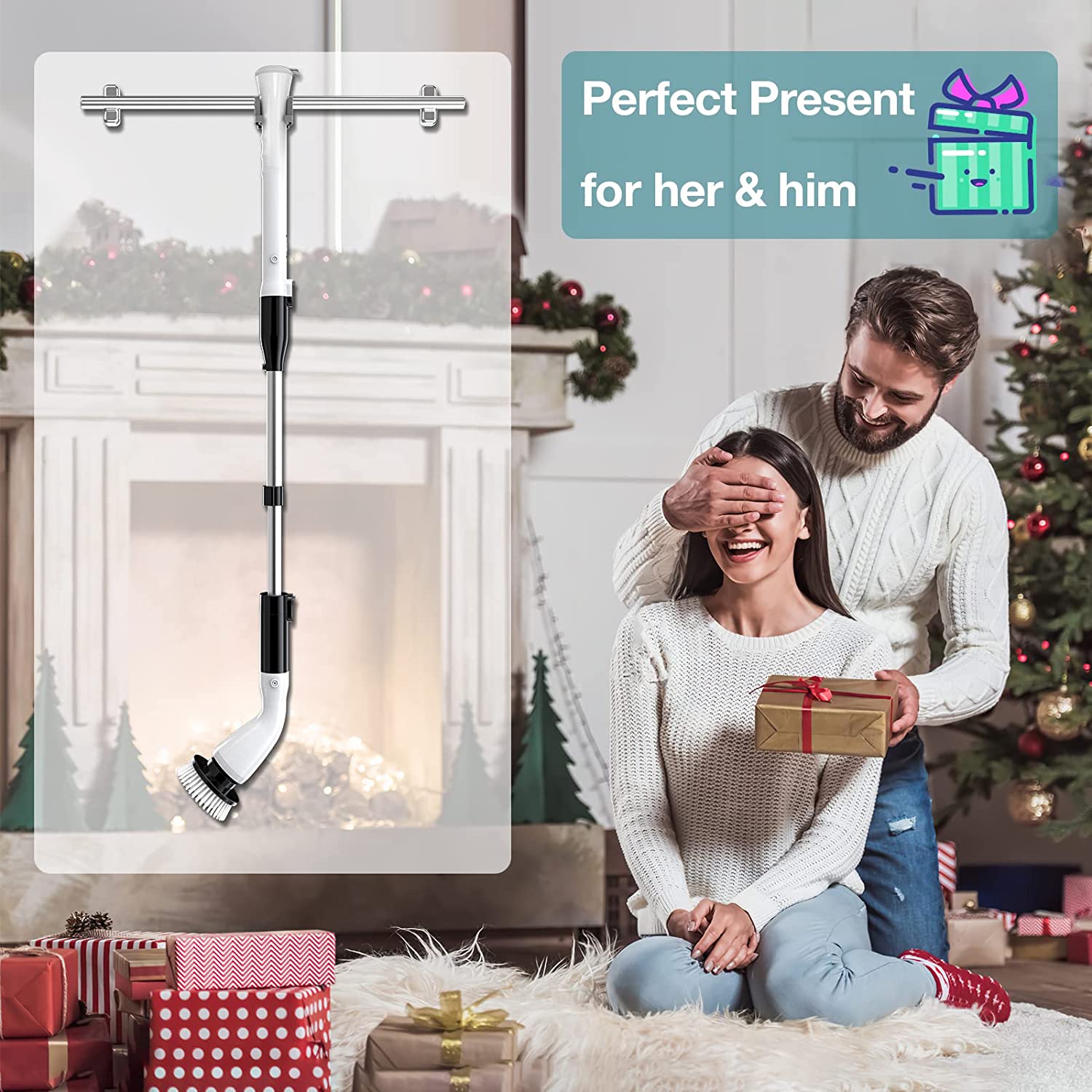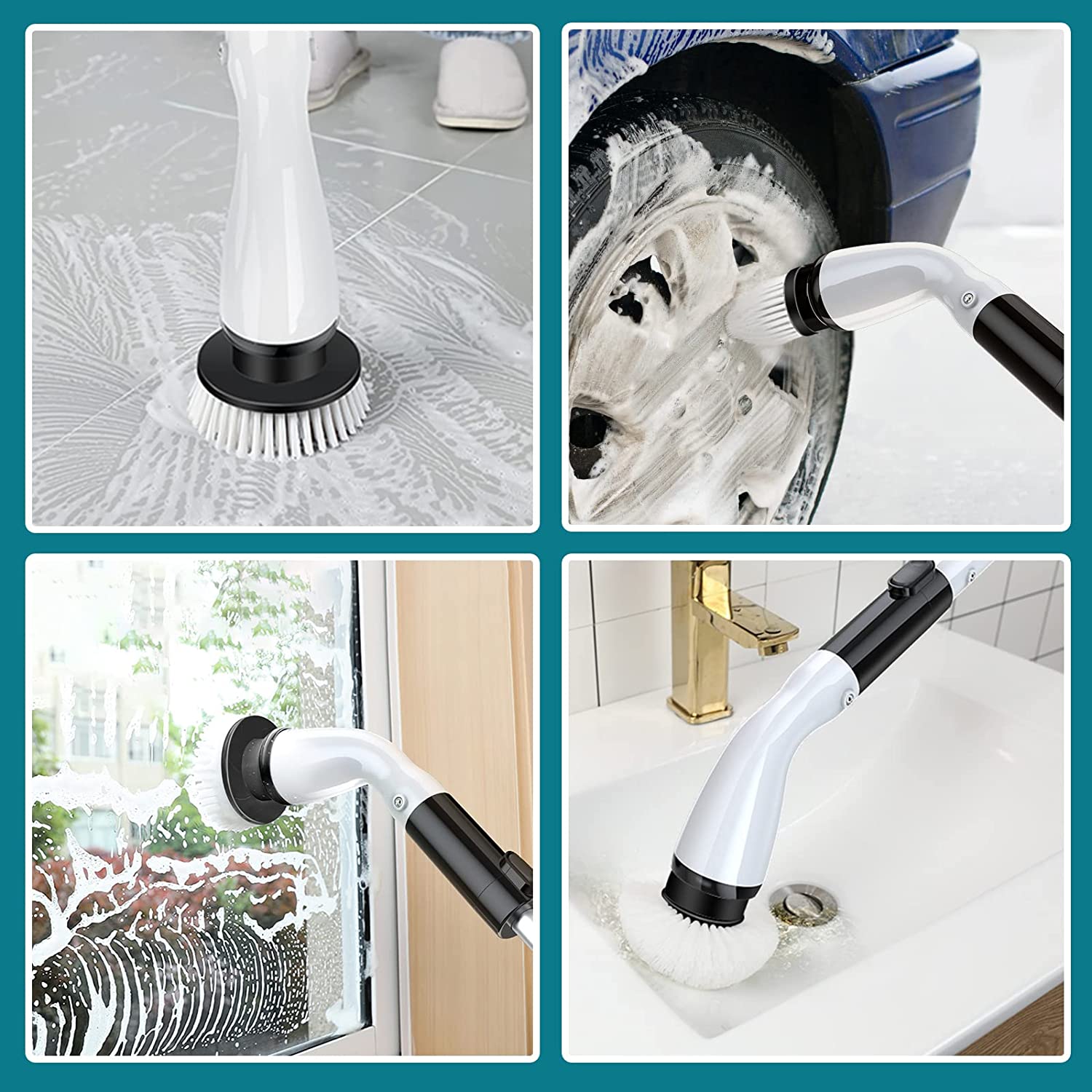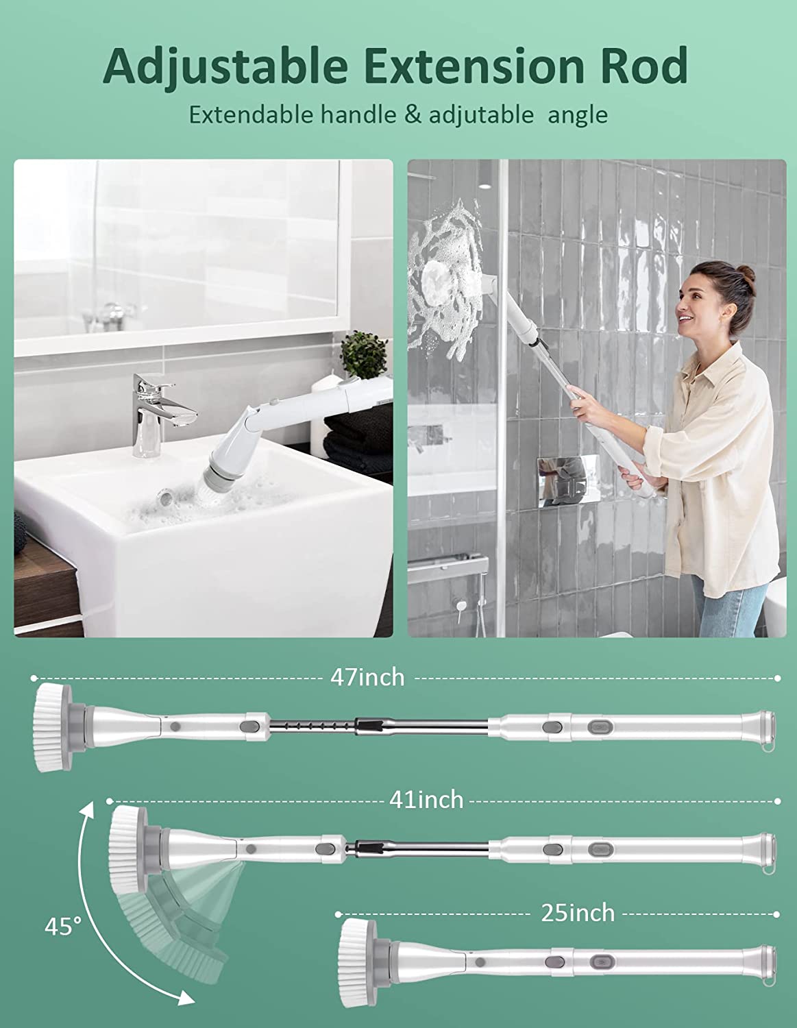 Sweepulire Electric Spin Scrubber AL6-W Pro. Cordless Household Cleaning Brush with Adjustable Extension Arm. 4 Replacement Brush Head. Power Shower Scrubber for Bathroom Tile Floor Wall Grout Bathtub