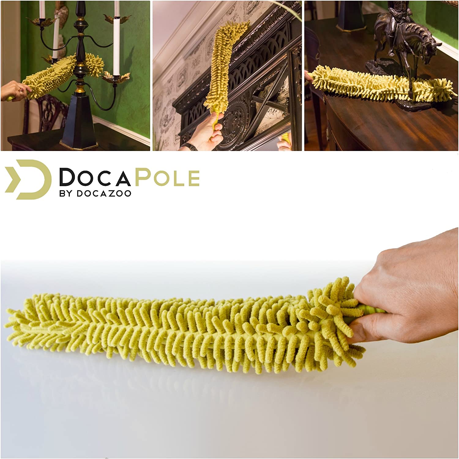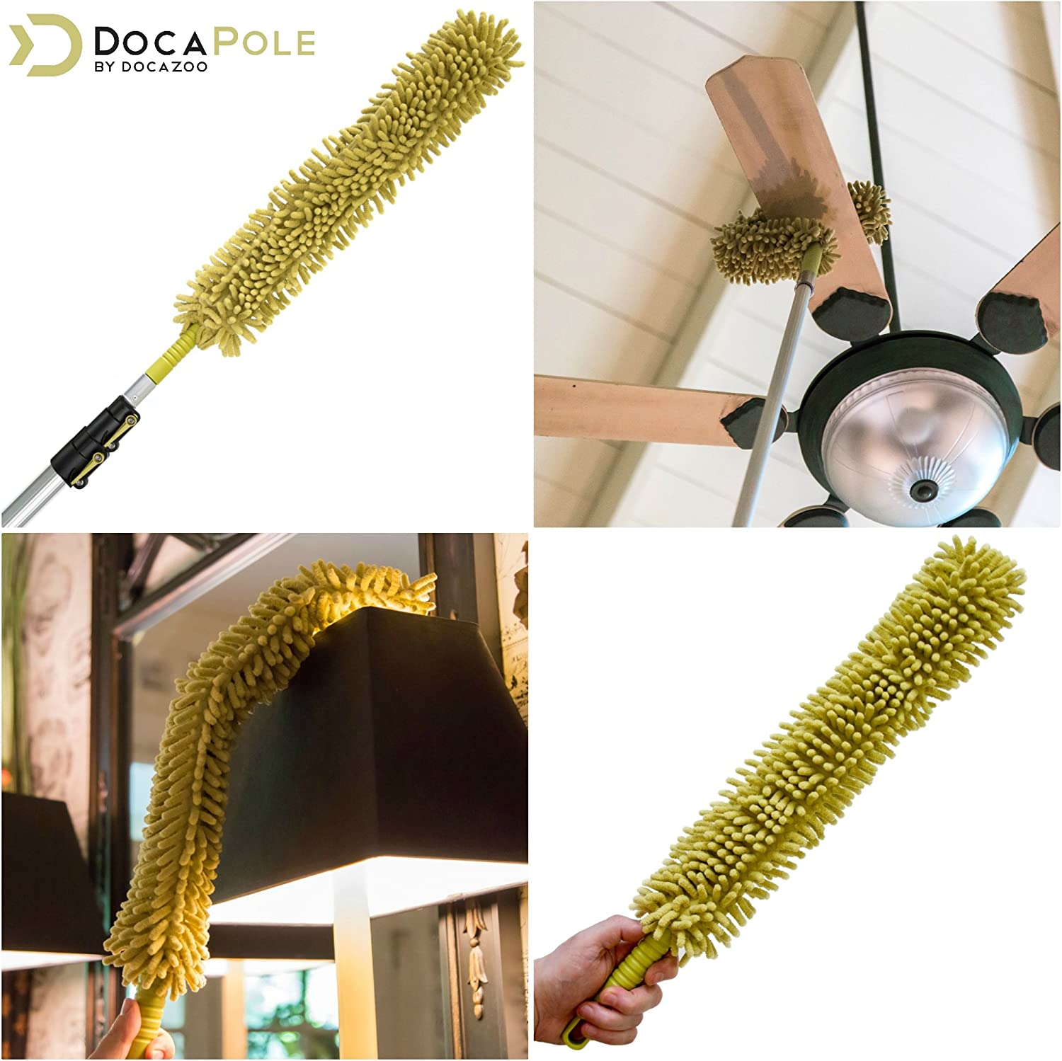 DocaPole Cleaning Kit with 5-12 Foot (20 ft Reach) Telescoping Extension Pole; Includes 1 Window Squeegee & Washer. and 3 Dusting Attachments; Cobweb. Microfiber Feather. and Ceiling Fan Dusters