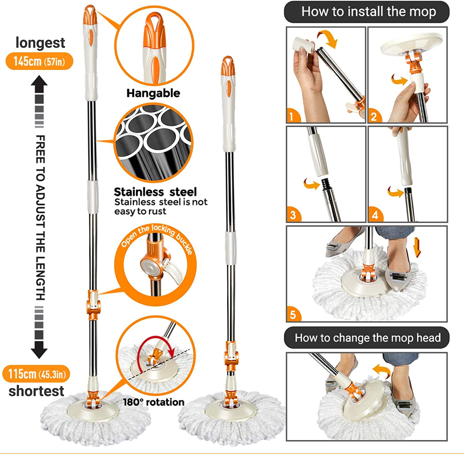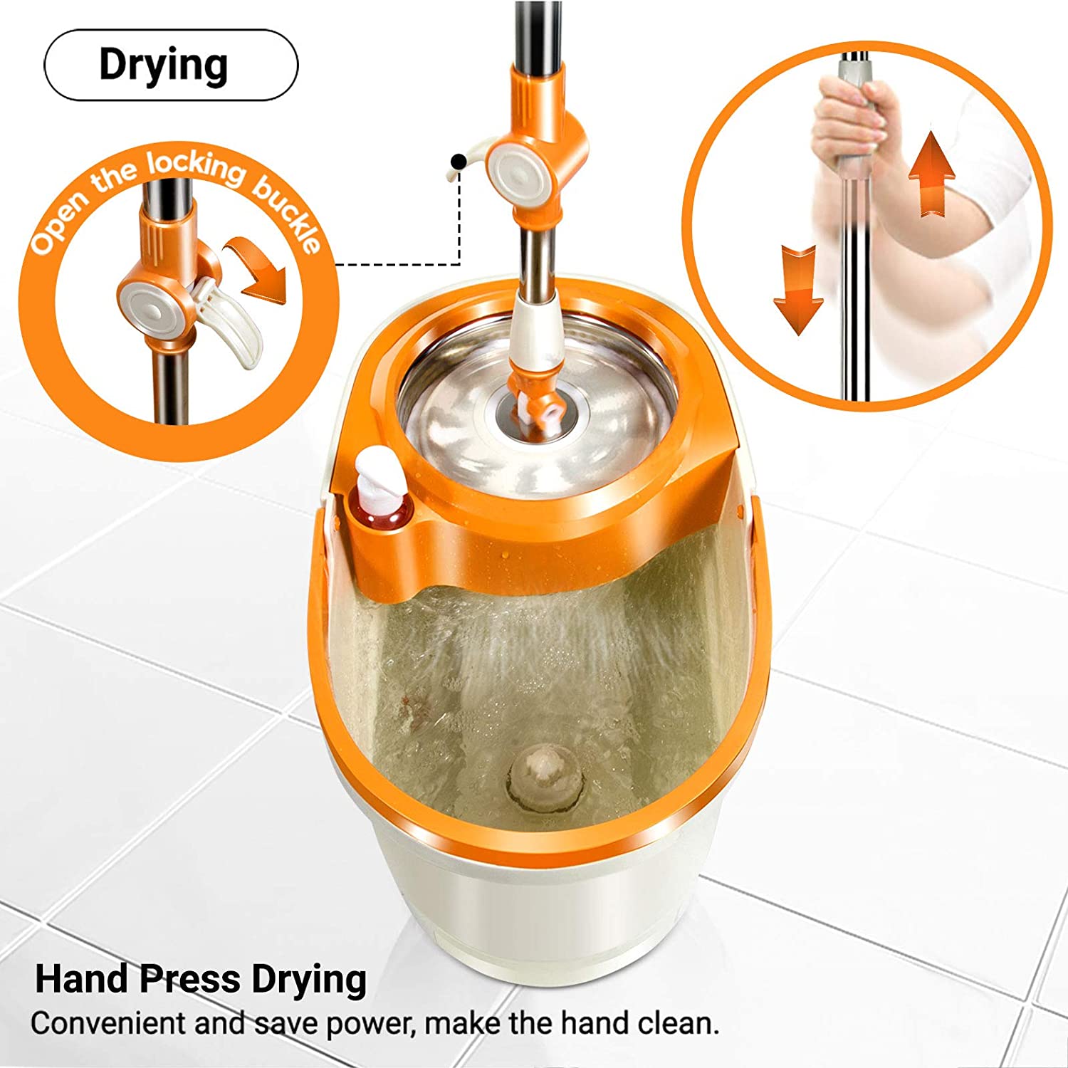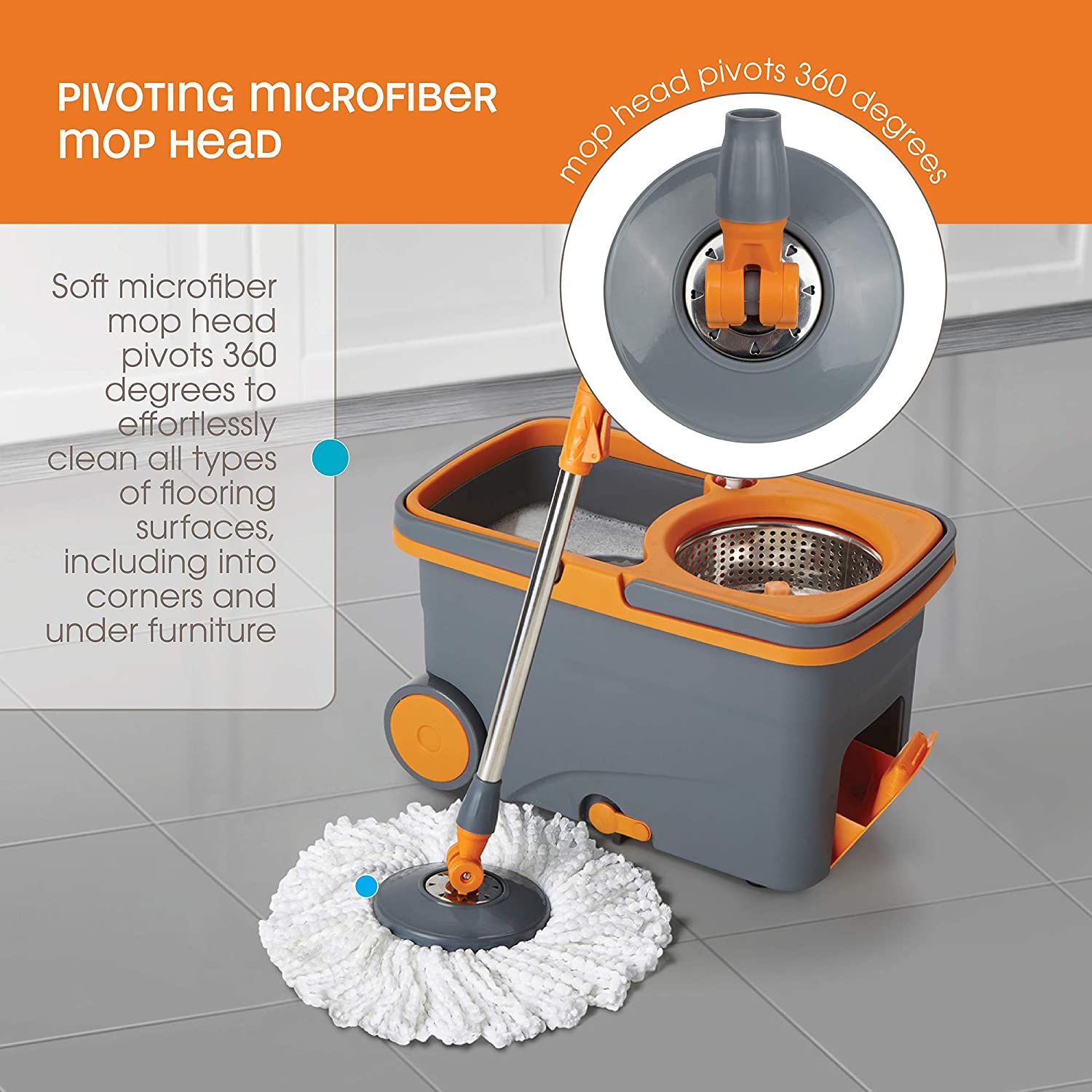 MASTERTOP Spin Mop and Bucket with Wringer Set. Floor Cleaning System. Easy Wring Foot Pedal. Stainless Steel Mop Handle. 5 Microfiber Refills. 5 Cleaning Clothes. Hardwood Laminate Tiles