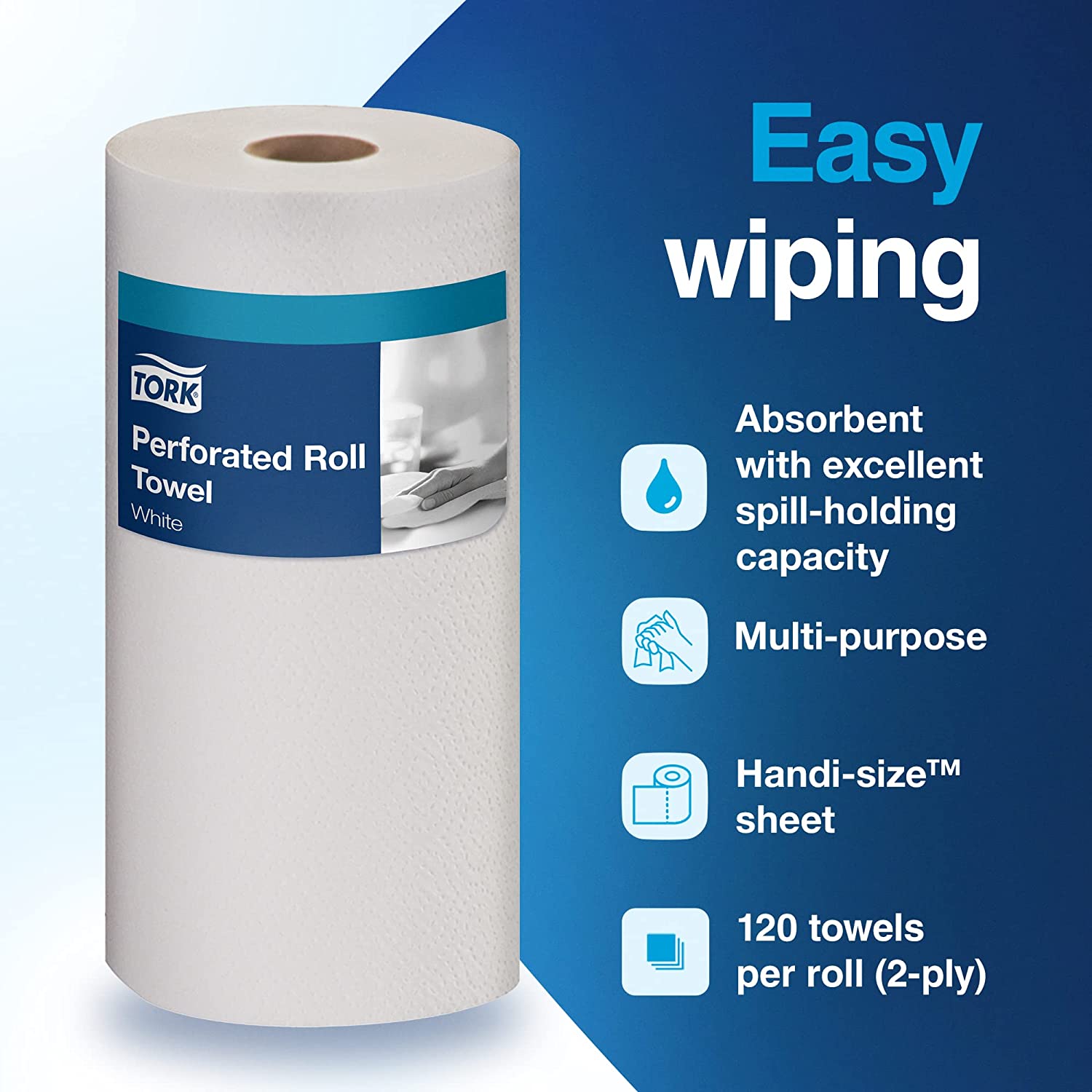 Tork HB9201 Handi-Size Perforated Paper Towel. White. Universal. 2-Ply. Case of 30 Rolls. 120 per Roll. 3.600 Towels