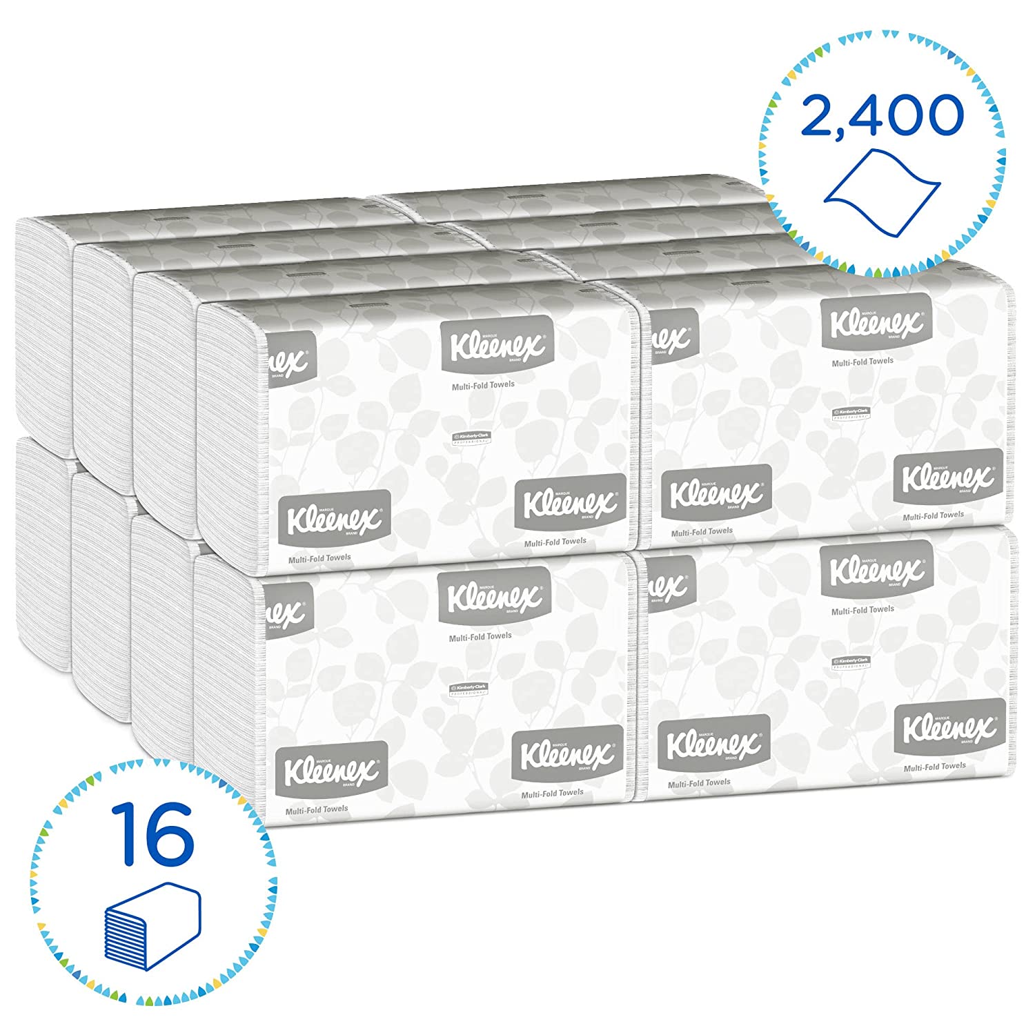 Kleenex Multifold Paper Towels (01890). White. 16 Packs / Case. 150 Tri Fold Paper Towels / Pack. 2.400 Towels / Case