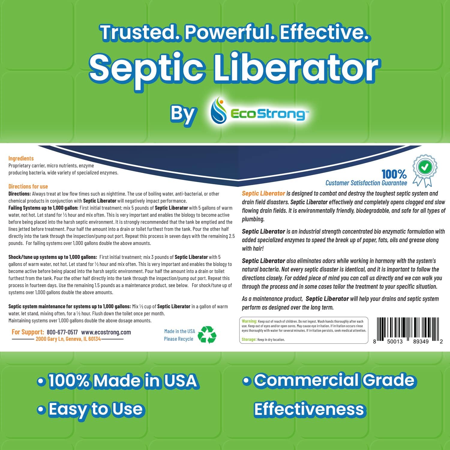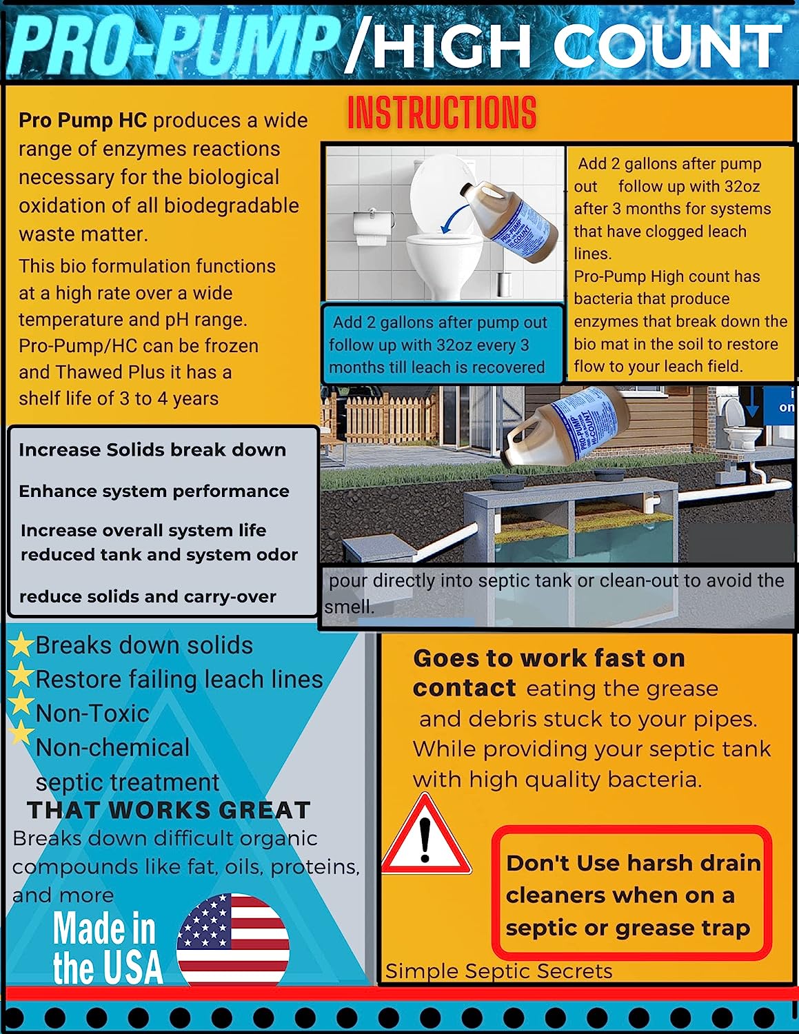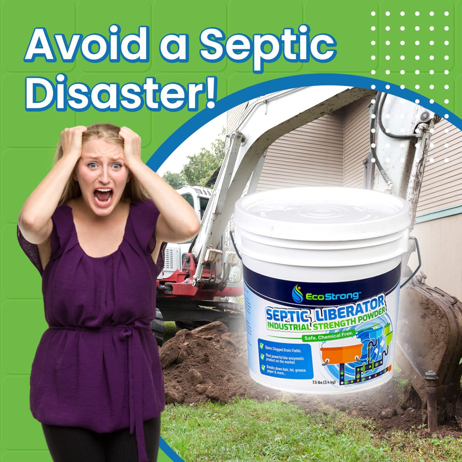 Septic Tank Shock Treatment | Bio Enzyme Septic Safe | Clears Leach & Drain Fields. Dissolves Organic Solids. Grease. Hair - Drain Deodorizer(7.5 LBS)