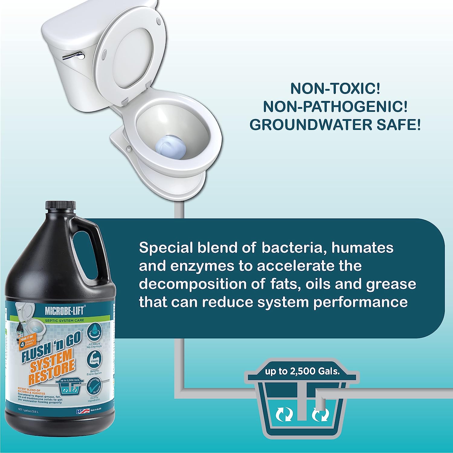 MICROBE-LIFT Emergency Septic Tank System Restore - Fast Acting Septic Tank Clog and Odor Removal for Troubled Septic Tanks Up to 2.500 Gallons - 1 Gallon