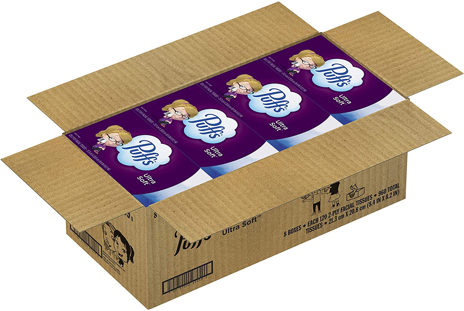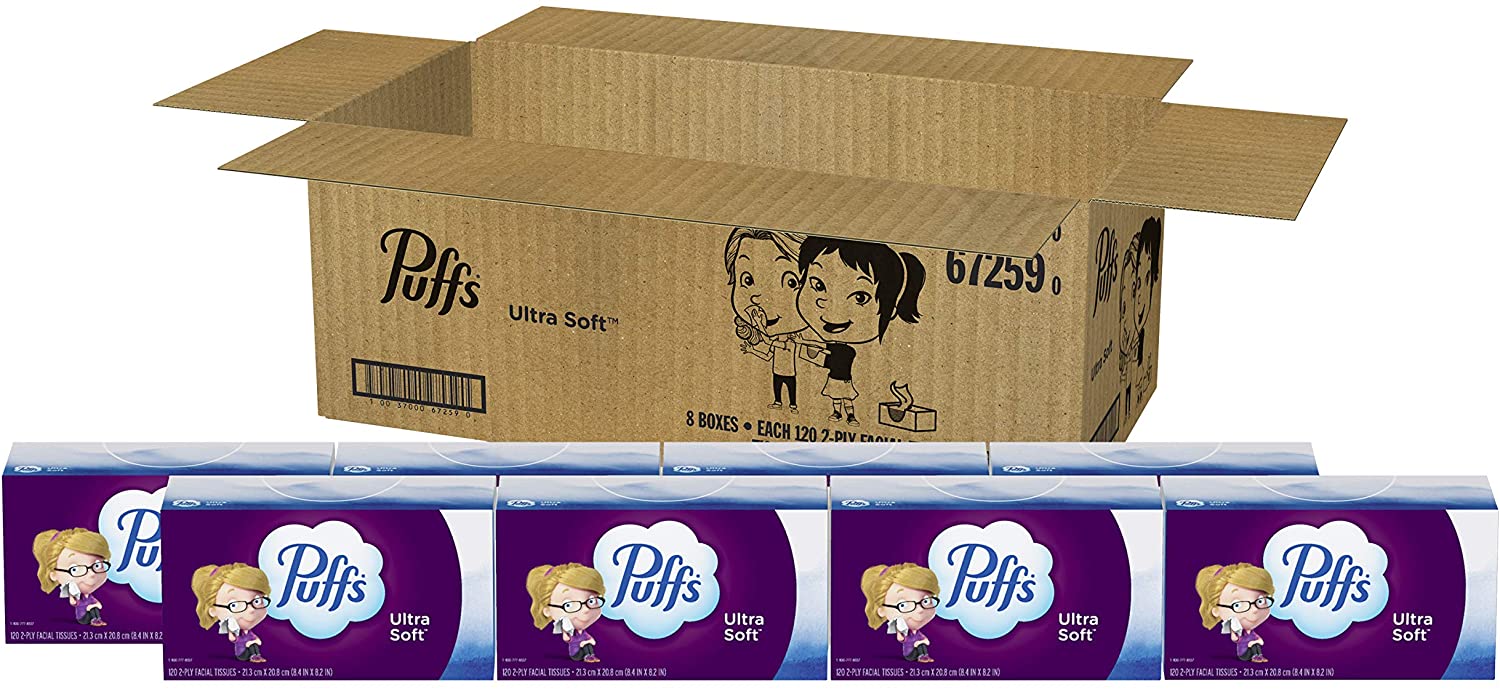 Puffs Ultra Soft Non-Lotion Facial Tissues. 8 Family Boxes. 120 Tissues/ Box