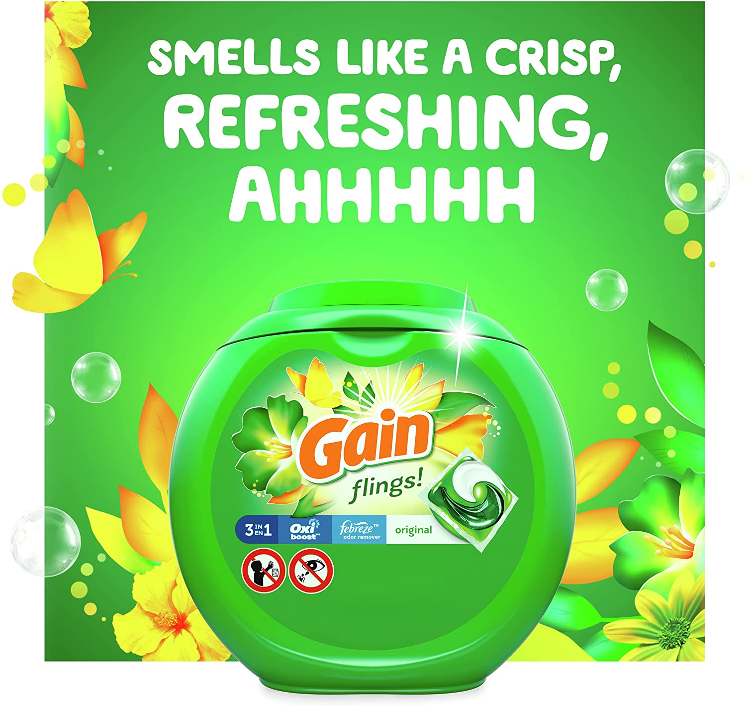 Gain flings Laundry Detergent Soap Pacs. High Efficiency. 81 Count
