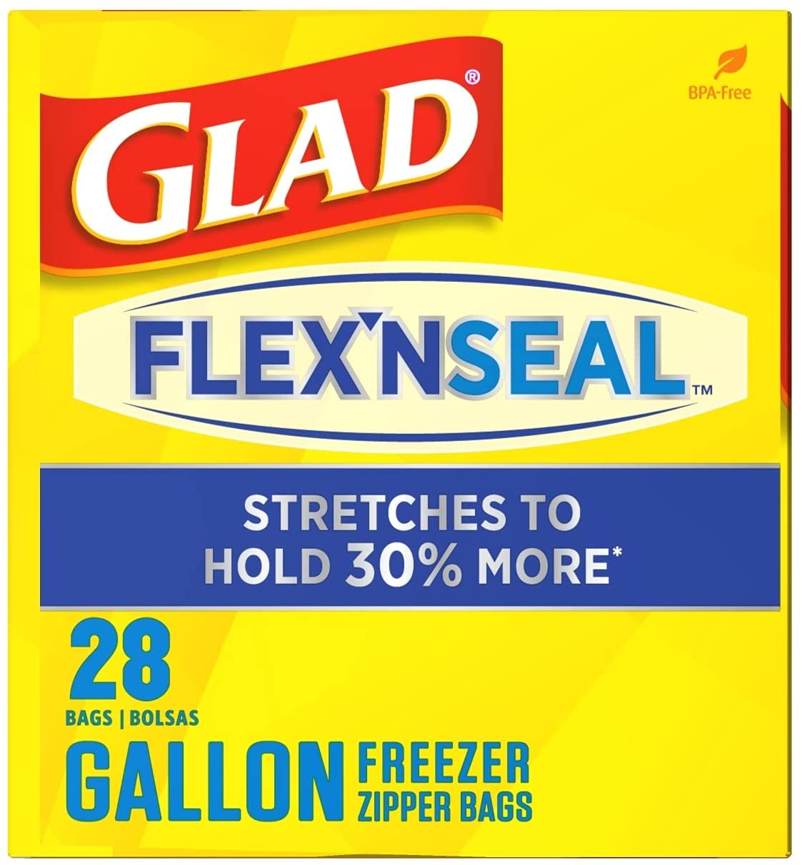 Glad FLEXN SEAL Gallon Freezer Zipper Bags. 28 Count (Pack of 4)