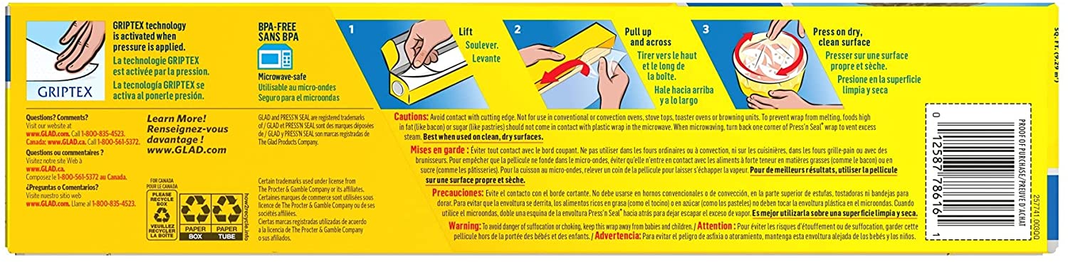 Glad Press-n Seal Plastic Food Wrap - 100 Square Foot Roll (Pack of 3)