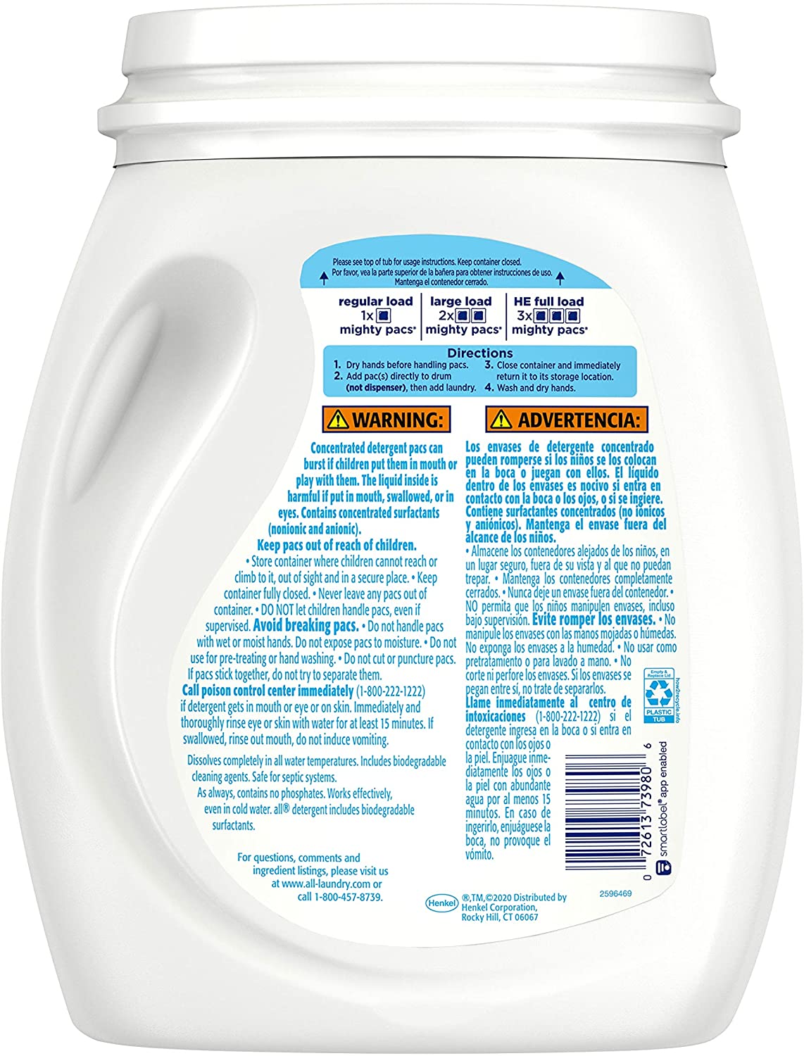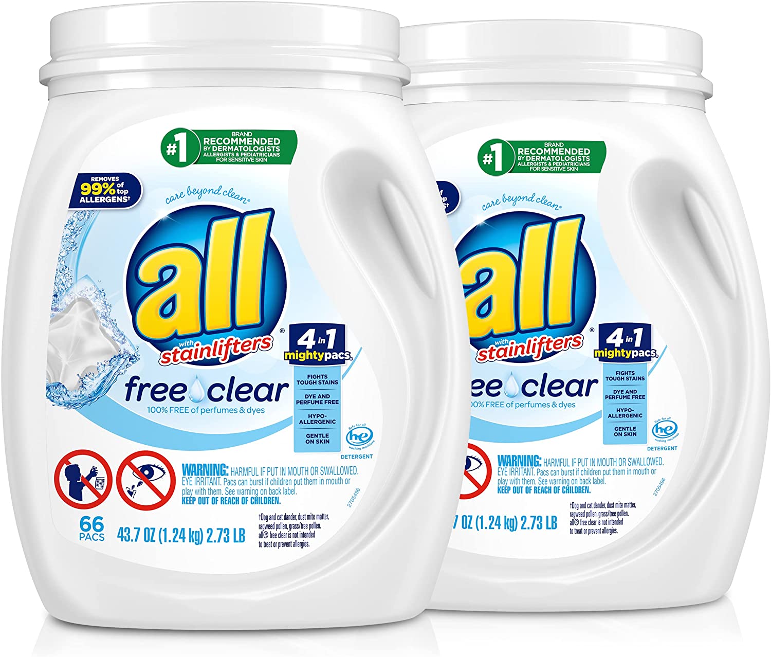 All Mighty Pacs with stainlifters free clear Laundry Detergent. 66 Count - 2 Pack