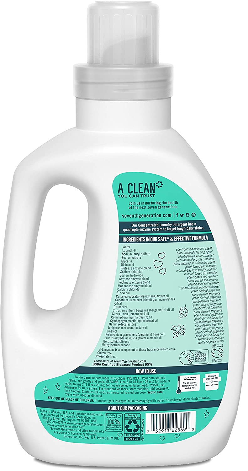 Seventh Generation Concentrated Baby Laundry Detergent. 40 Fl Oz. 2 Pack