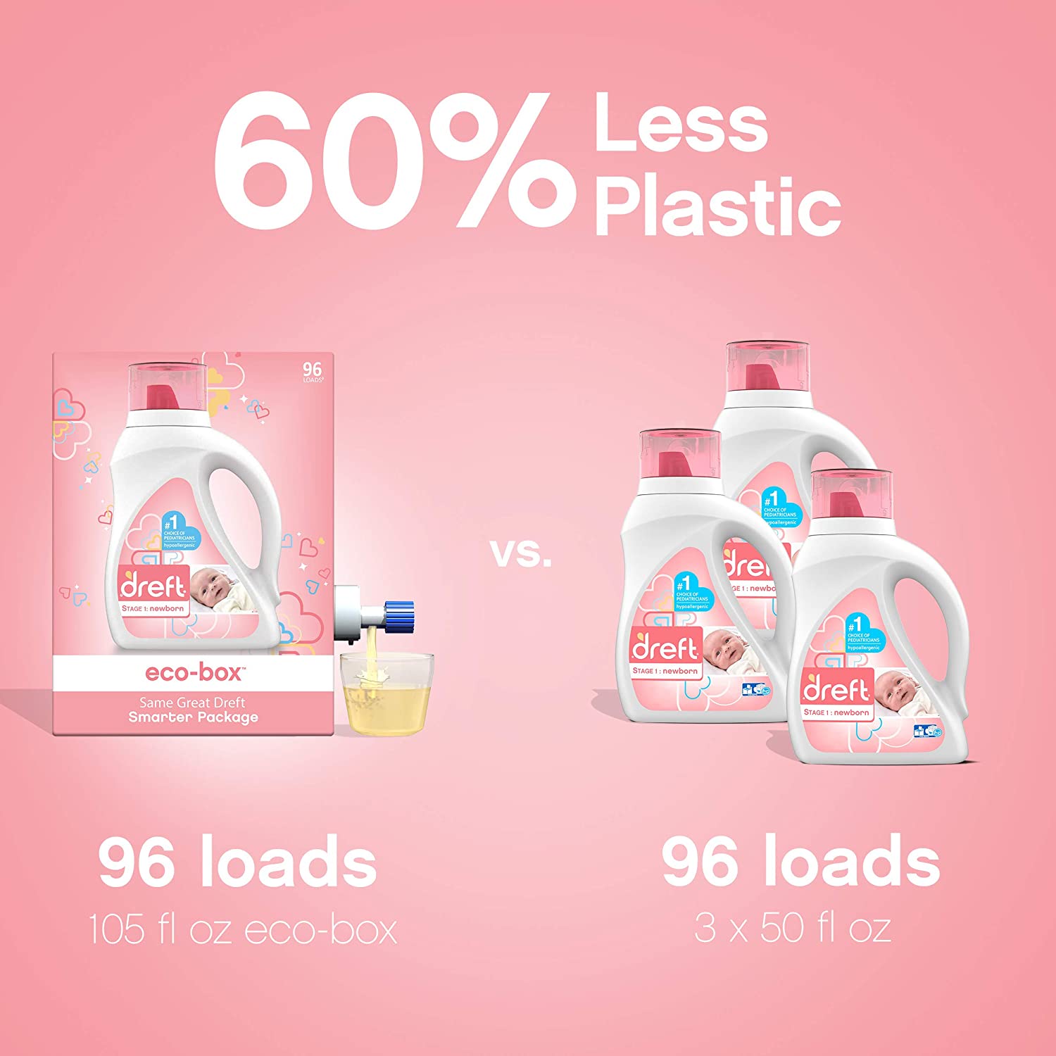 Dreft Baby Liquid Laundry Detergent Soap Eco-Box. Natural. 96 Loads