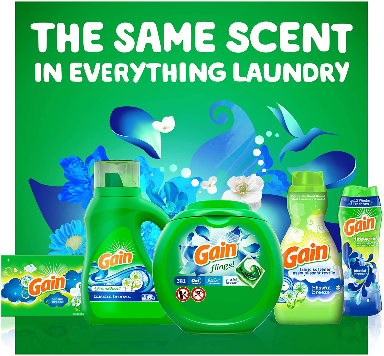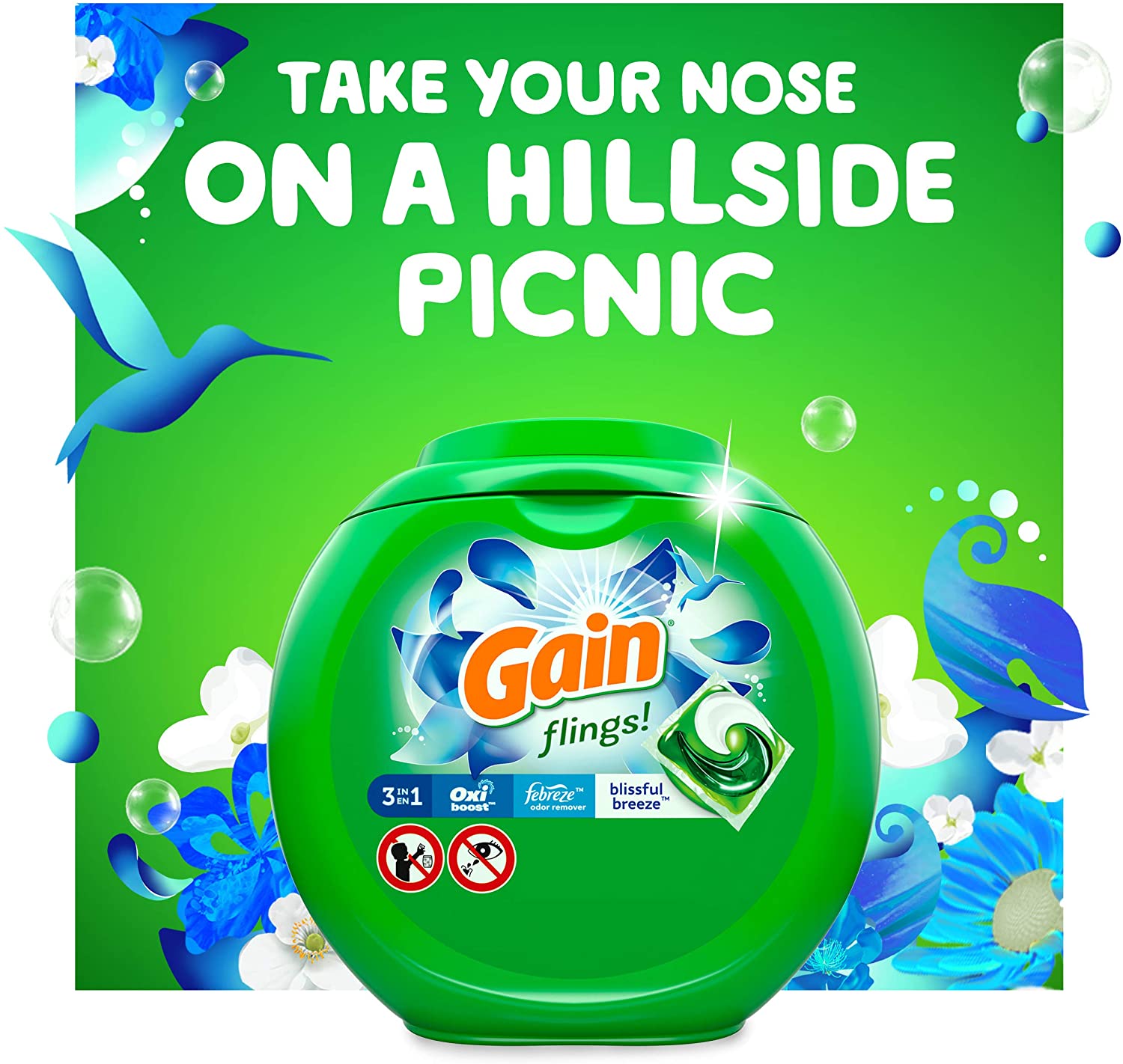 Gain flings! Laundry Detergent Soap Pacs. Blissful Breeze Scent. 96 Count