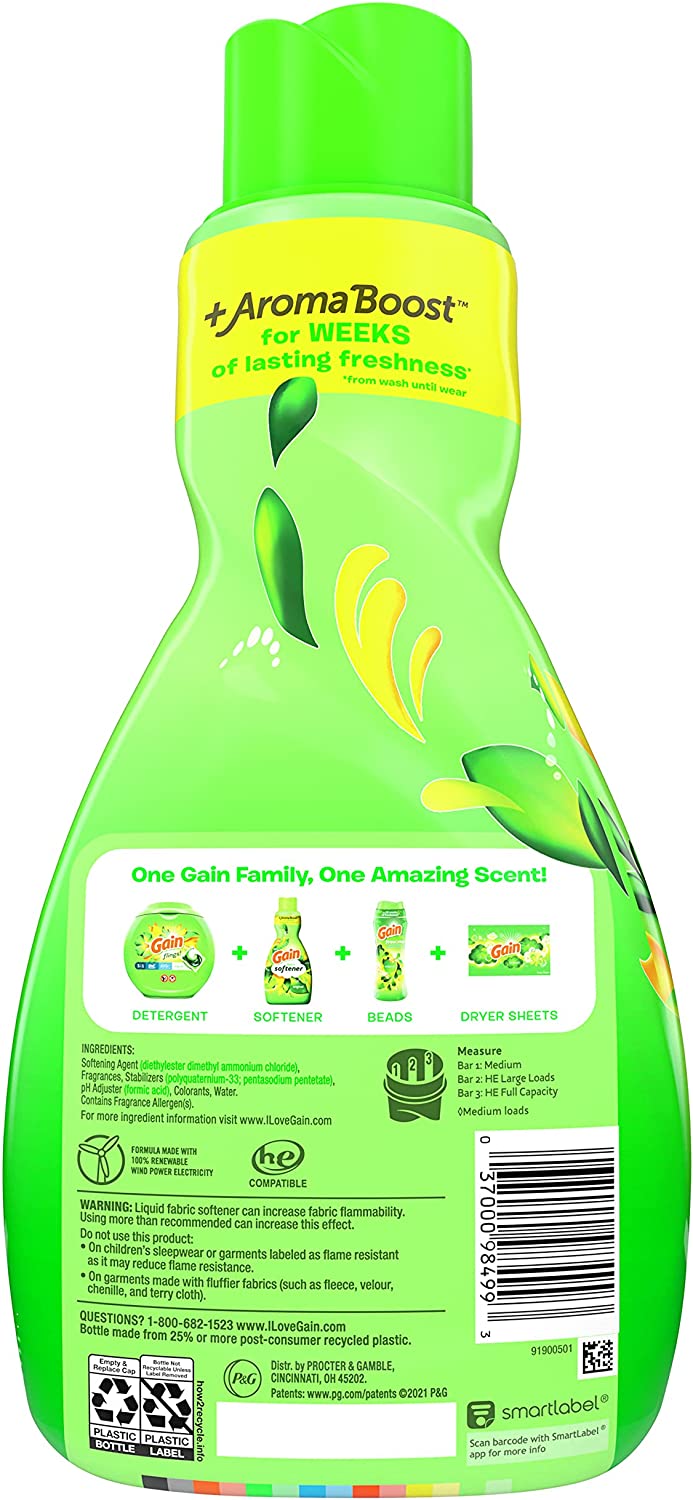 Gain Fabric Softener. Original Scent. 41 fl oz. 48 loads. HE Compatible. Pack of 4