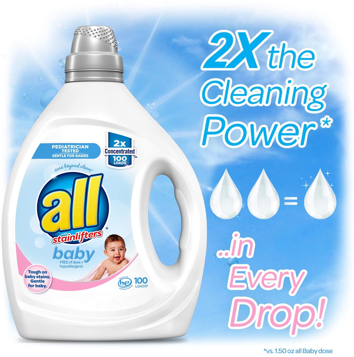 All Liquid Laundry Detergent. Gentle for Baby. 2X Concentrated. 100 Loads