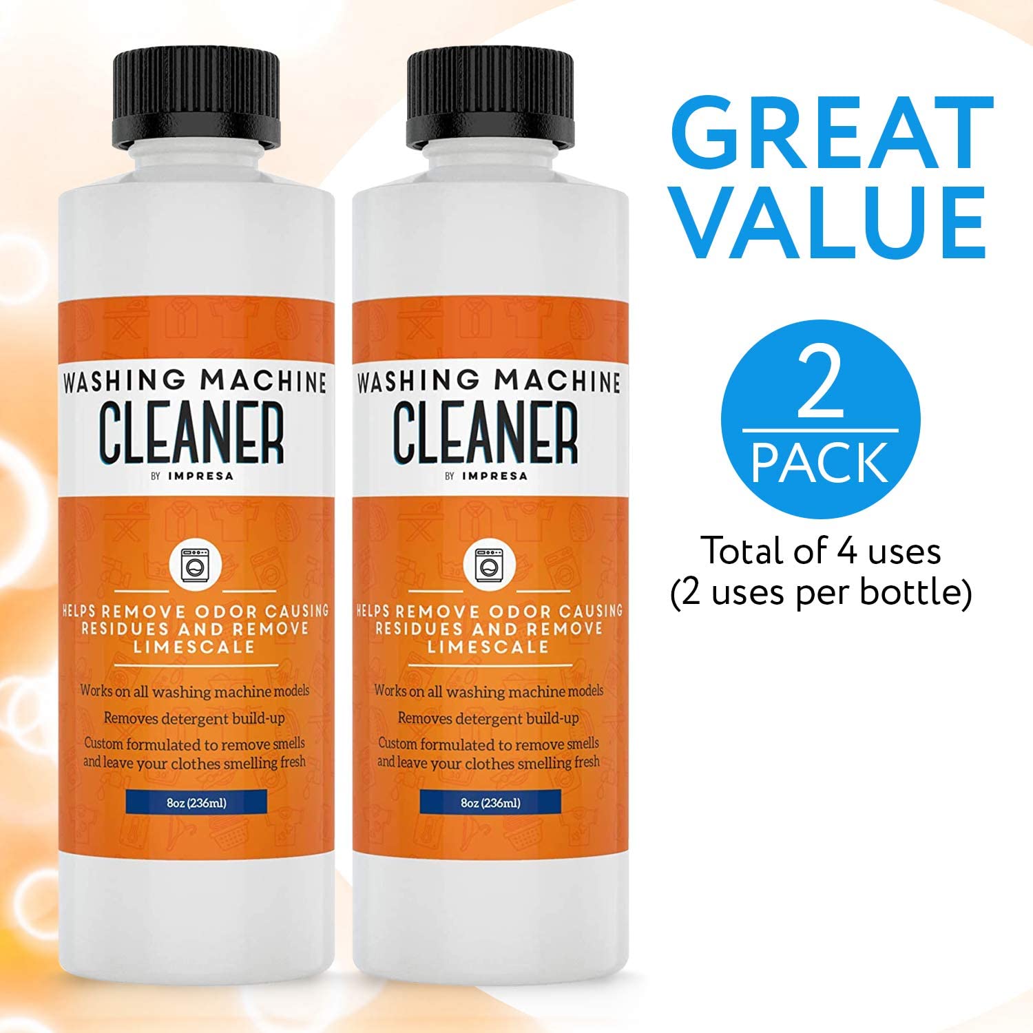 Glisten Washer Magic Washing Machine Cleaner and Deodorizer. 4 Bottles